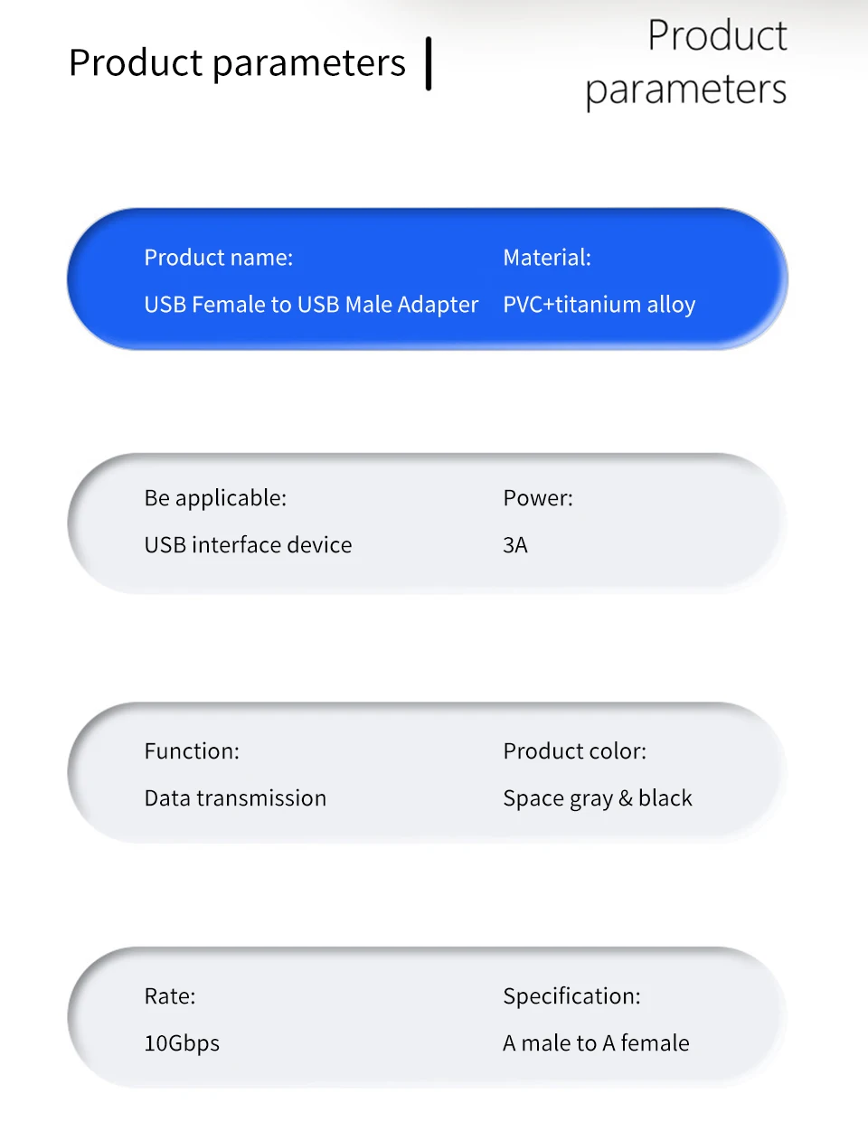 USB 3.0 coupler , super speed transmission rate up to 10Gbps (theoretical), transfer data rate may vary with different usb port.