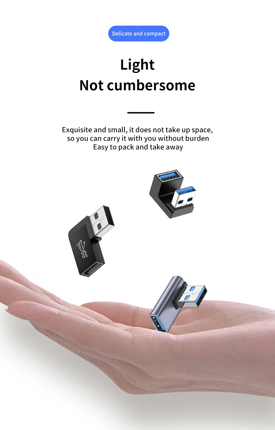 Hot-swap supported, handy-size usb L shape adaptor, you can carry everywhere.These adapters provided you a way to keep using your USB port without being concerned any more by being too close to the side of your desk.