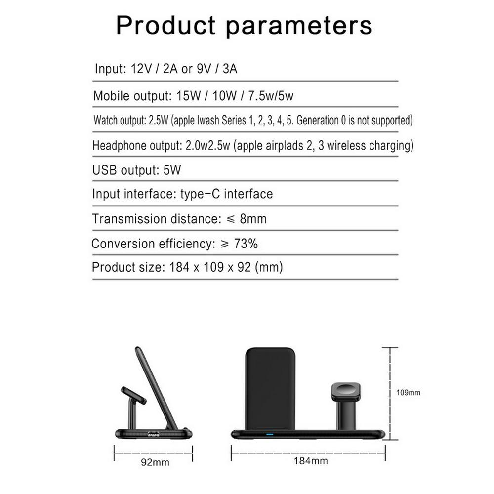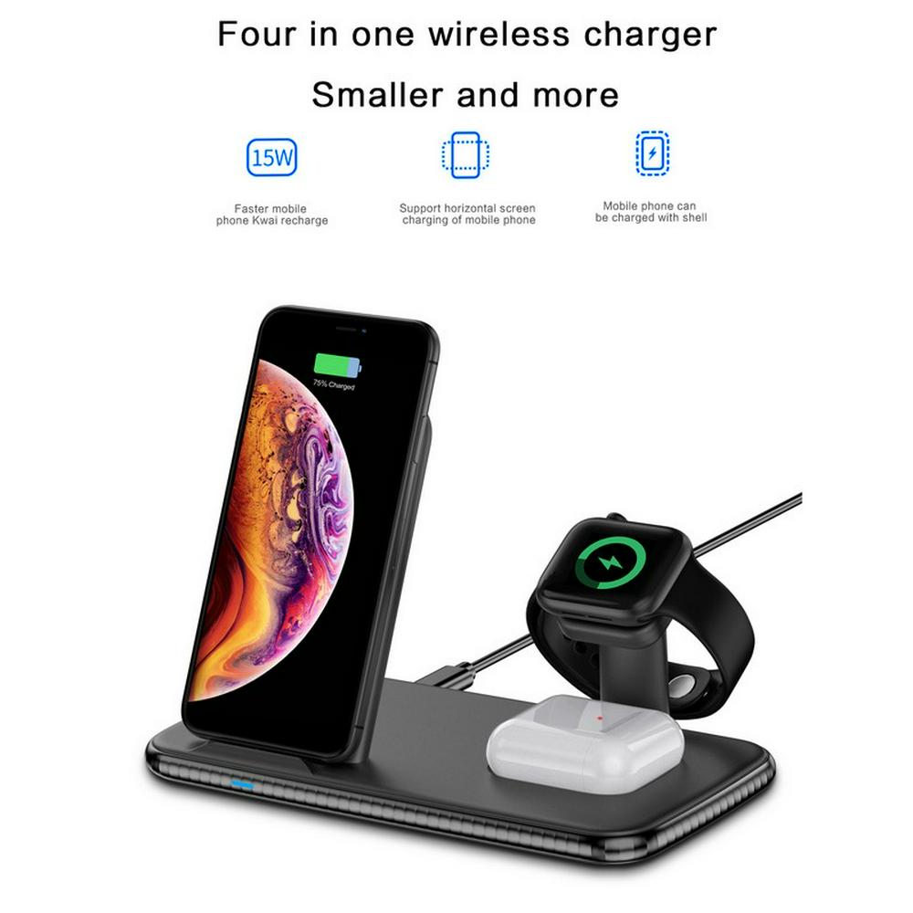 4 in 1 multi-functional wireless charger:Perfectly charge your for iPhone/Apple Watch /Airpods/ at the same time,only need an adapter cable can power all the for apple devices.