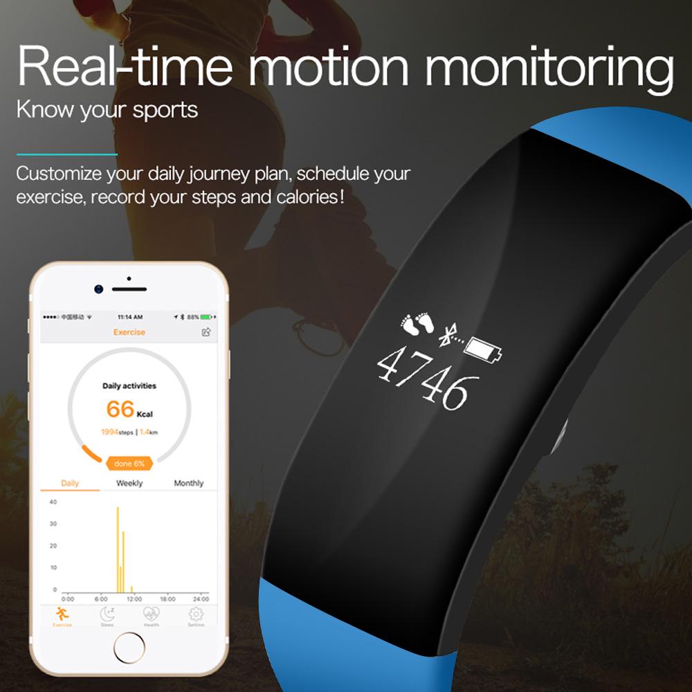 Activities track:Record daily steps(At least 10 steps will the device update the data),distance,calories consumption and active minutes.