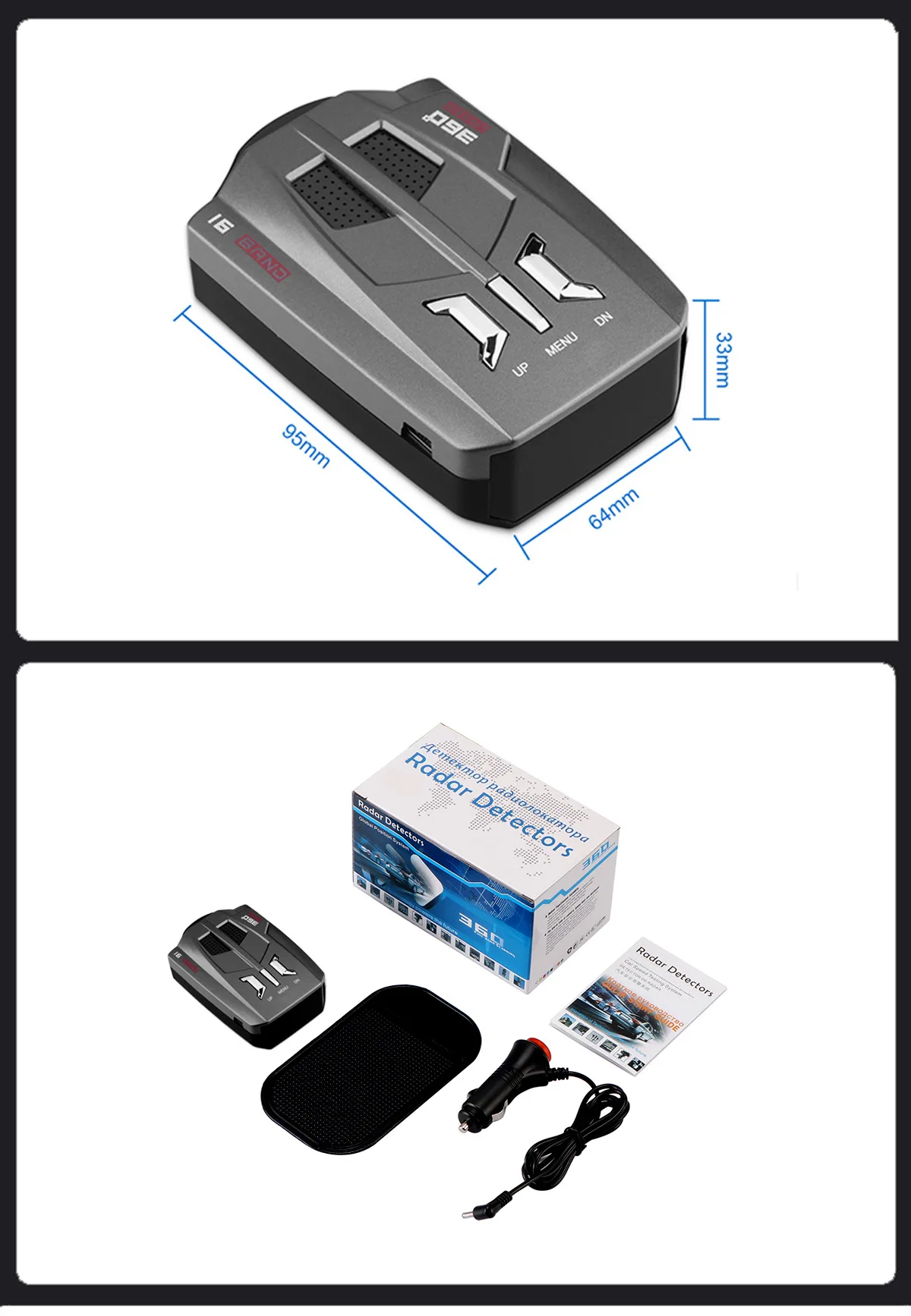 Product acessories: radar detector/car charger/non-slip mat/manual