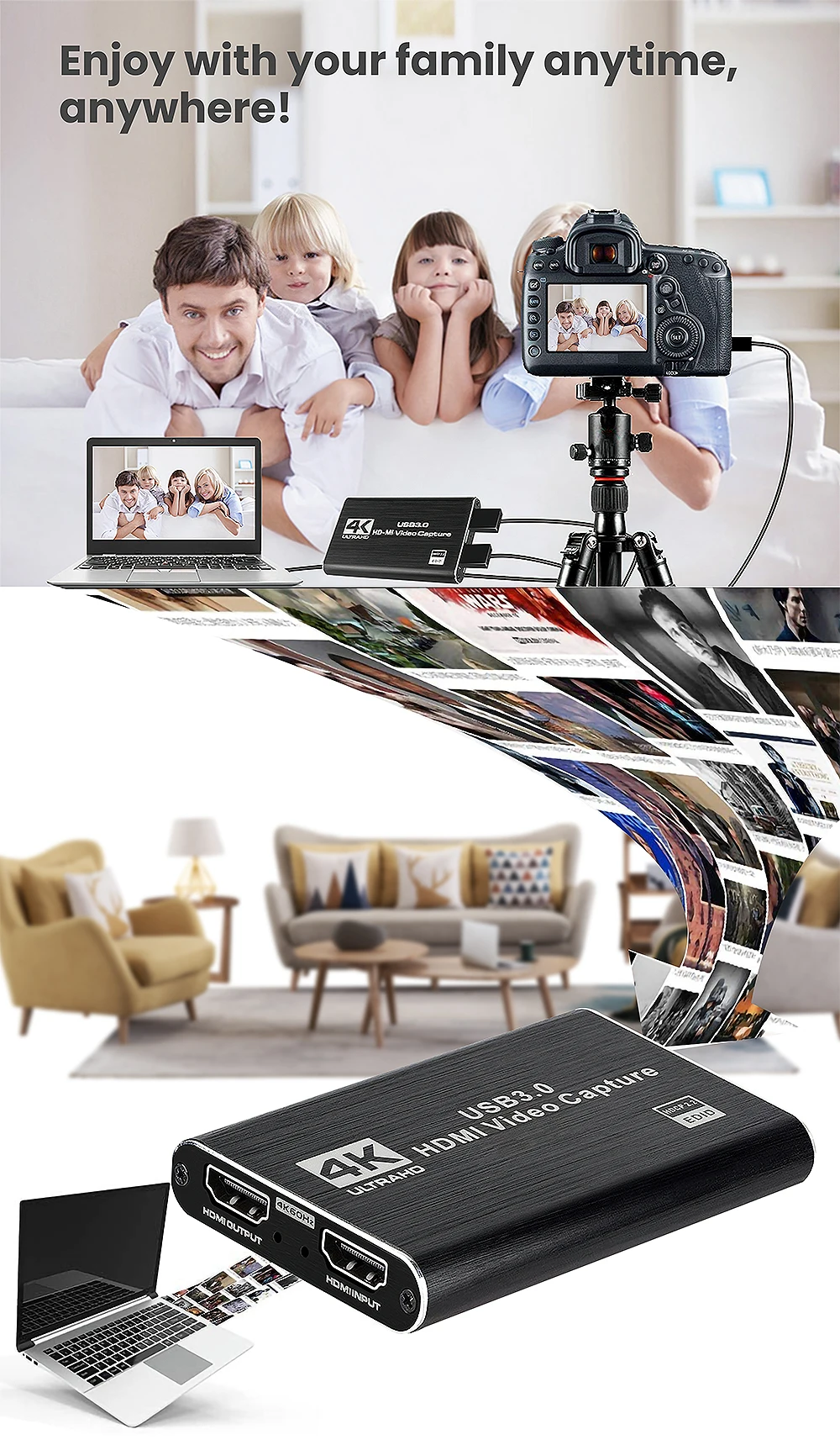 4K HDMI to USB3.0 video capture card, easy to carry, superior performance, good compatibility, simple installation and powerful functions.