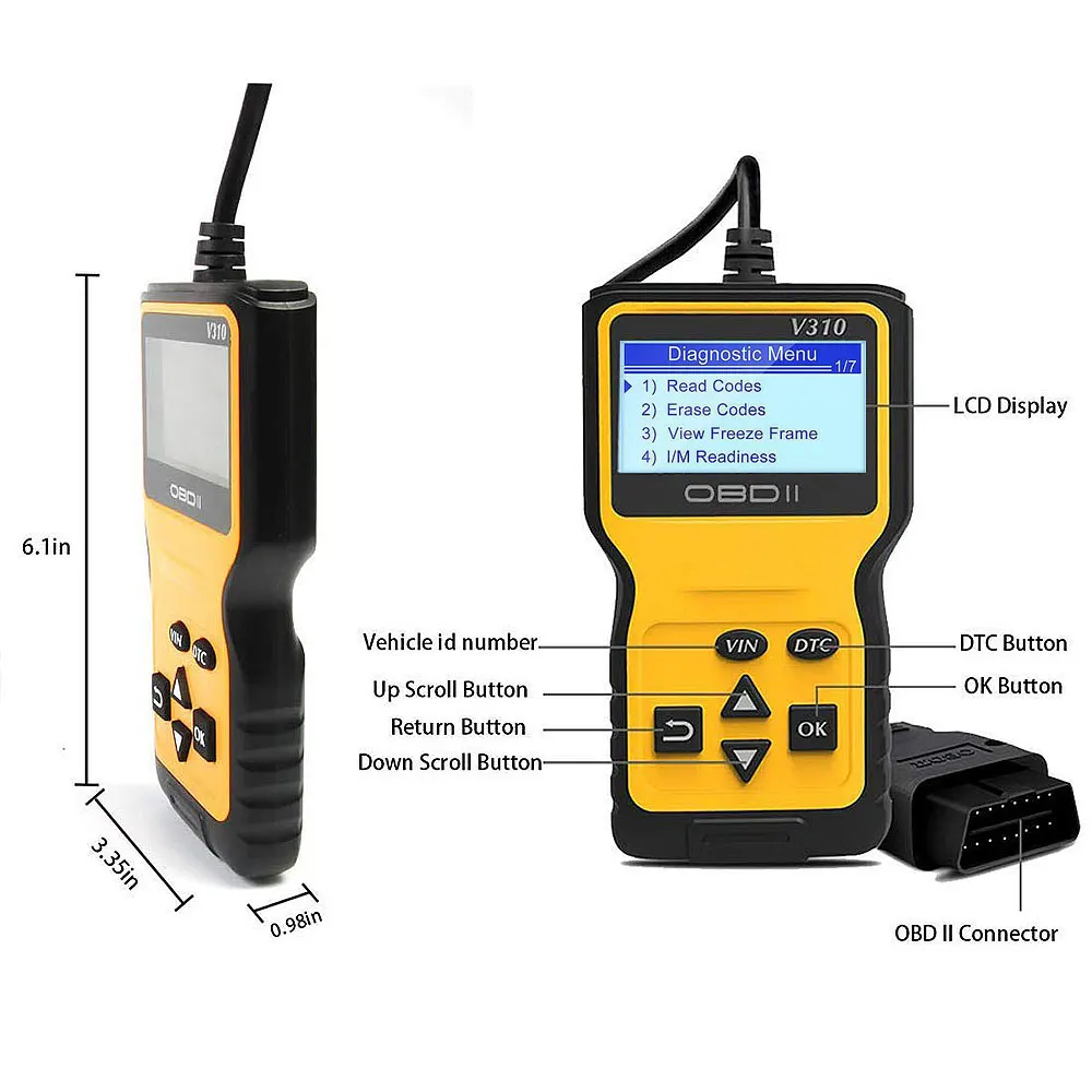 Viecar V310 OBD2 Scanner Car Engine Code Reader Diagnostic Tool Multi-languages Universal odb 2 odb2 Automotive Scanner Functions: