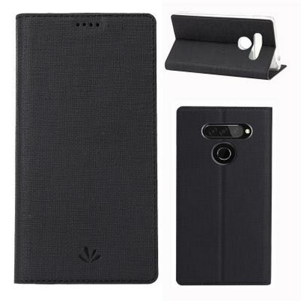 Vili Cross Pattern Side Flip Shockproof PU Leather + Soft TPU with Card Slot and Stand Protective Case for LG Q70