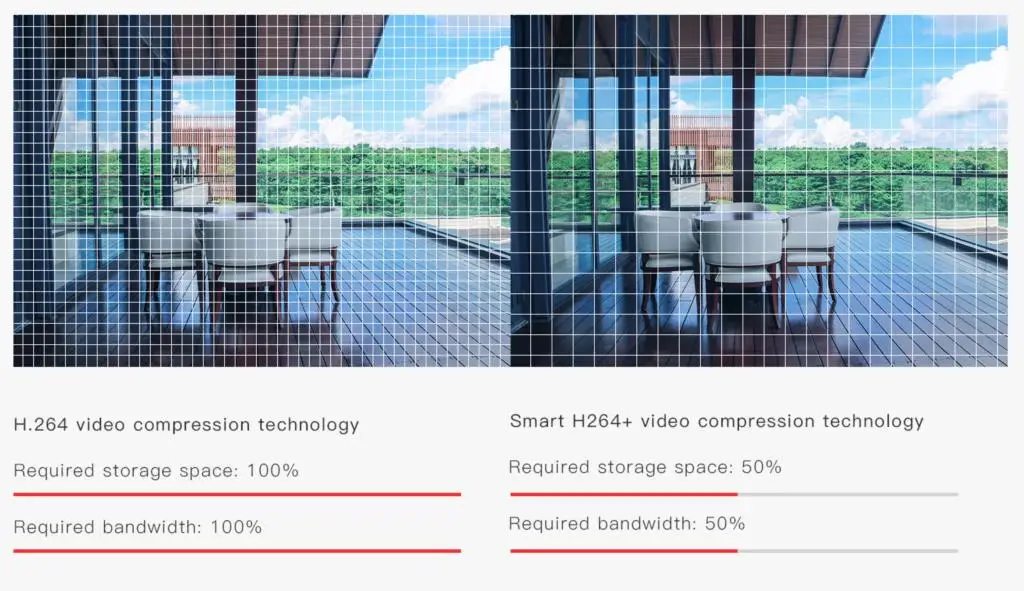 √ With 145° view angle, the camera will capture more monitoring area and information. √ Upgraded H.264+ video compression, records more videos with less storage space, and provide faster video streams, the video maximum frame rate can reach up to 30fps.