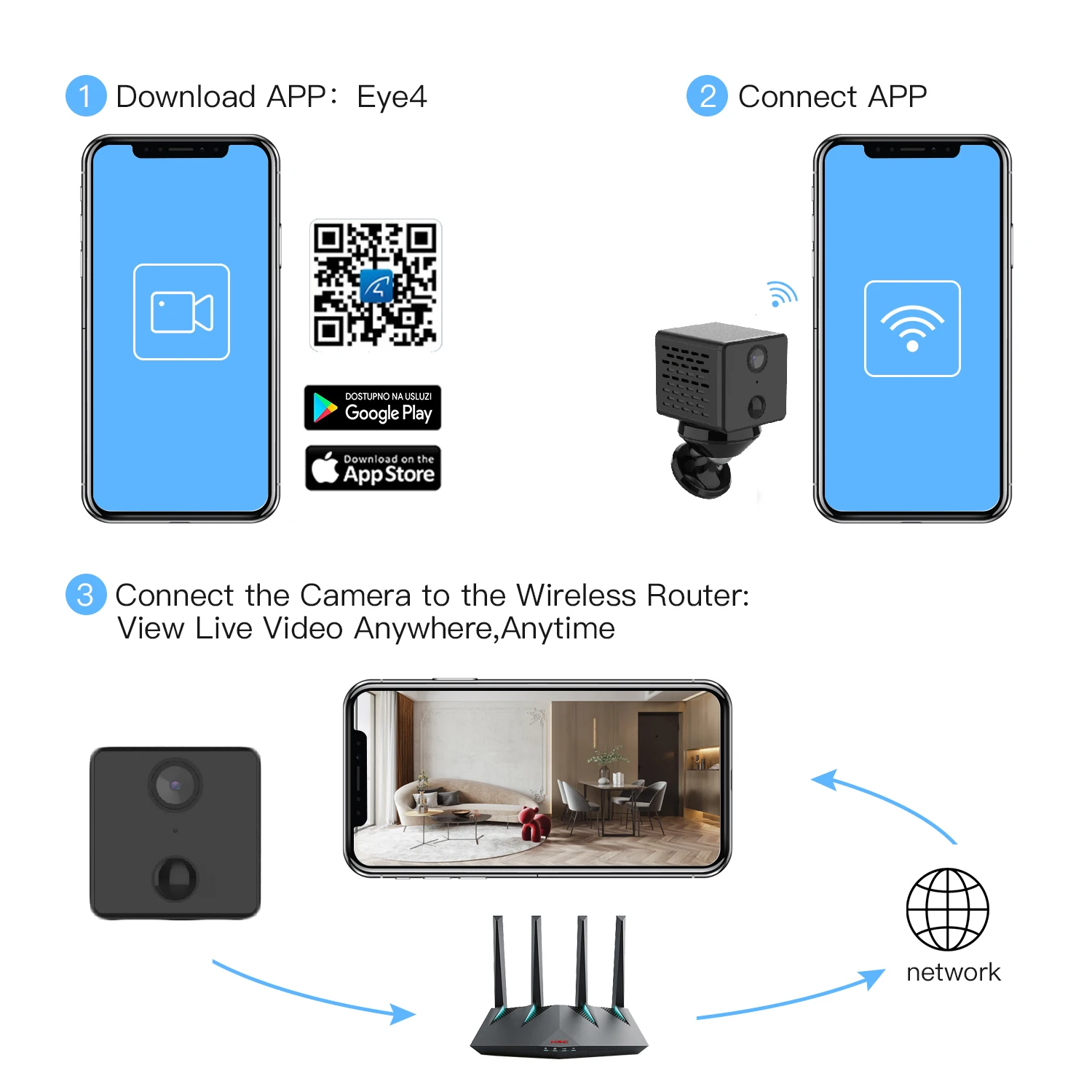 √ support computer PC, ipad, laptop, android, ios phone or devices connection. √ 4 users can login the camera and viewing at the same time, an Eye4 account can add up to 64 cameras.
