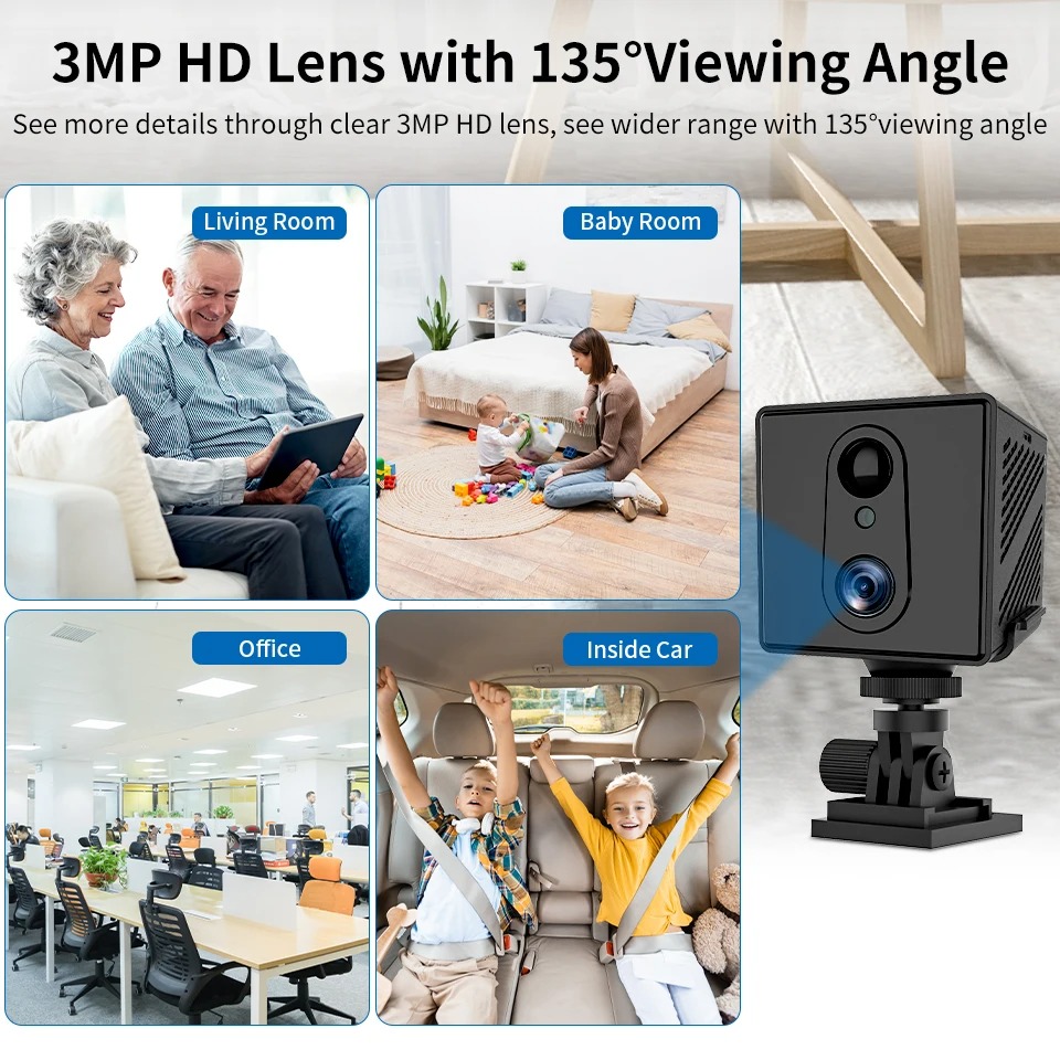 Vstarcam CB70W Cameras for Home Security, 3MP Mini Portable Surveillance Indoor Camera, Long Life Battery, Clear Night Vision