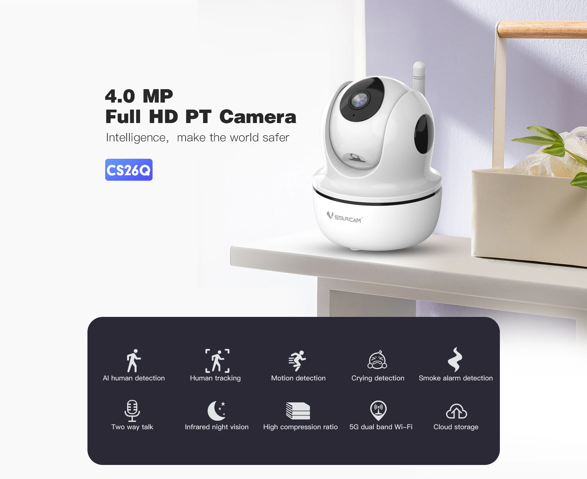Vstarcam CS26Q 5MP UHD 2.4G&5G Dual Band WIFI PTZ IP Dome Camera Smoke Alarm AI Humanoid Tracking Security CCTV Baby Monitor