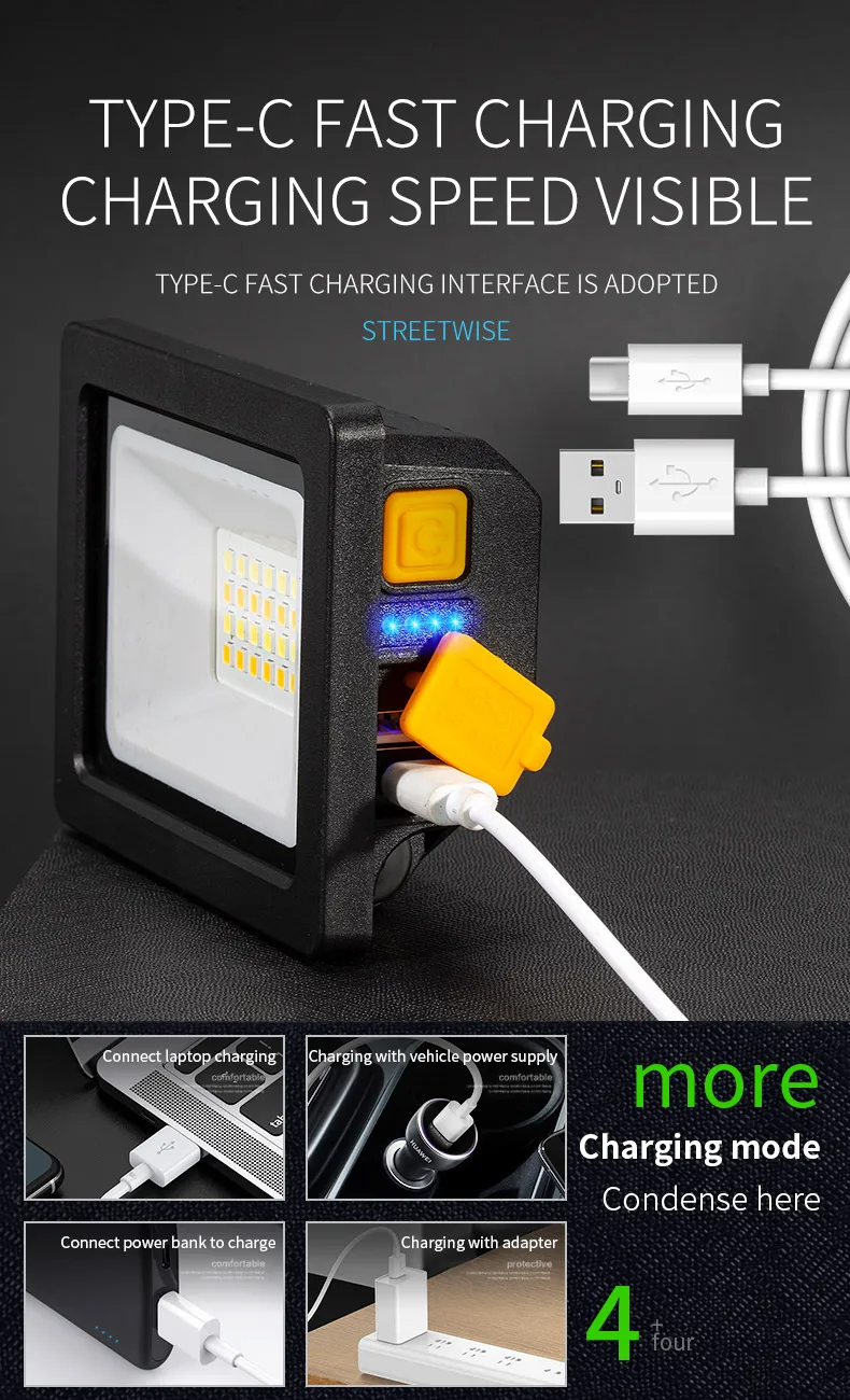 W897 USB Rechargeable LED Flashlight Rotate Bracket Portable Pocket Light Multifunctional COB Work Lamp Mini Keychain LED Light