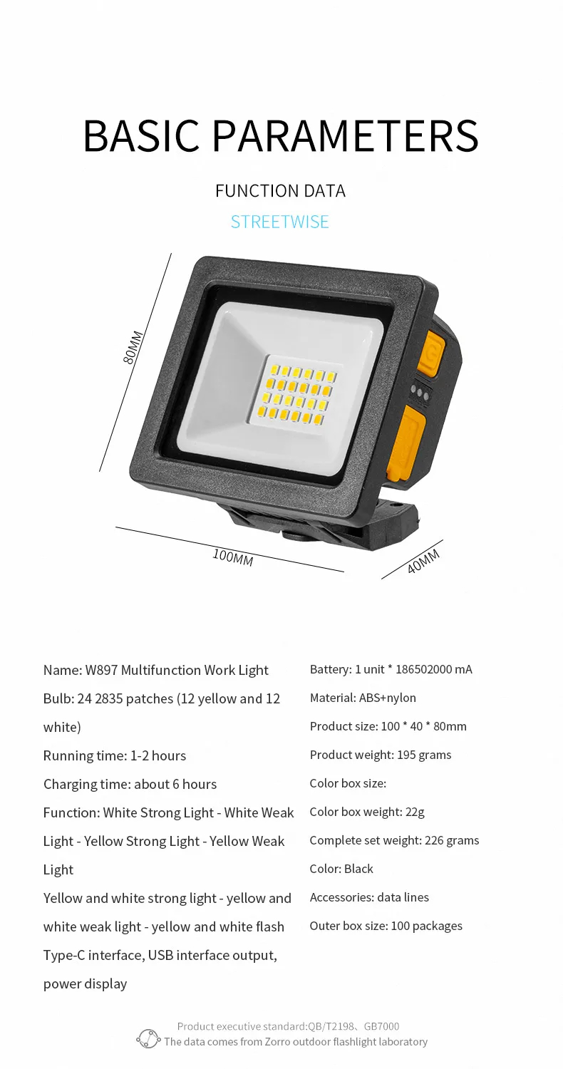 Function: white strong light - white weak light - yellow strong - yellow weak light - yellow and white strong light - yellow and white weak light - yellow and white flash