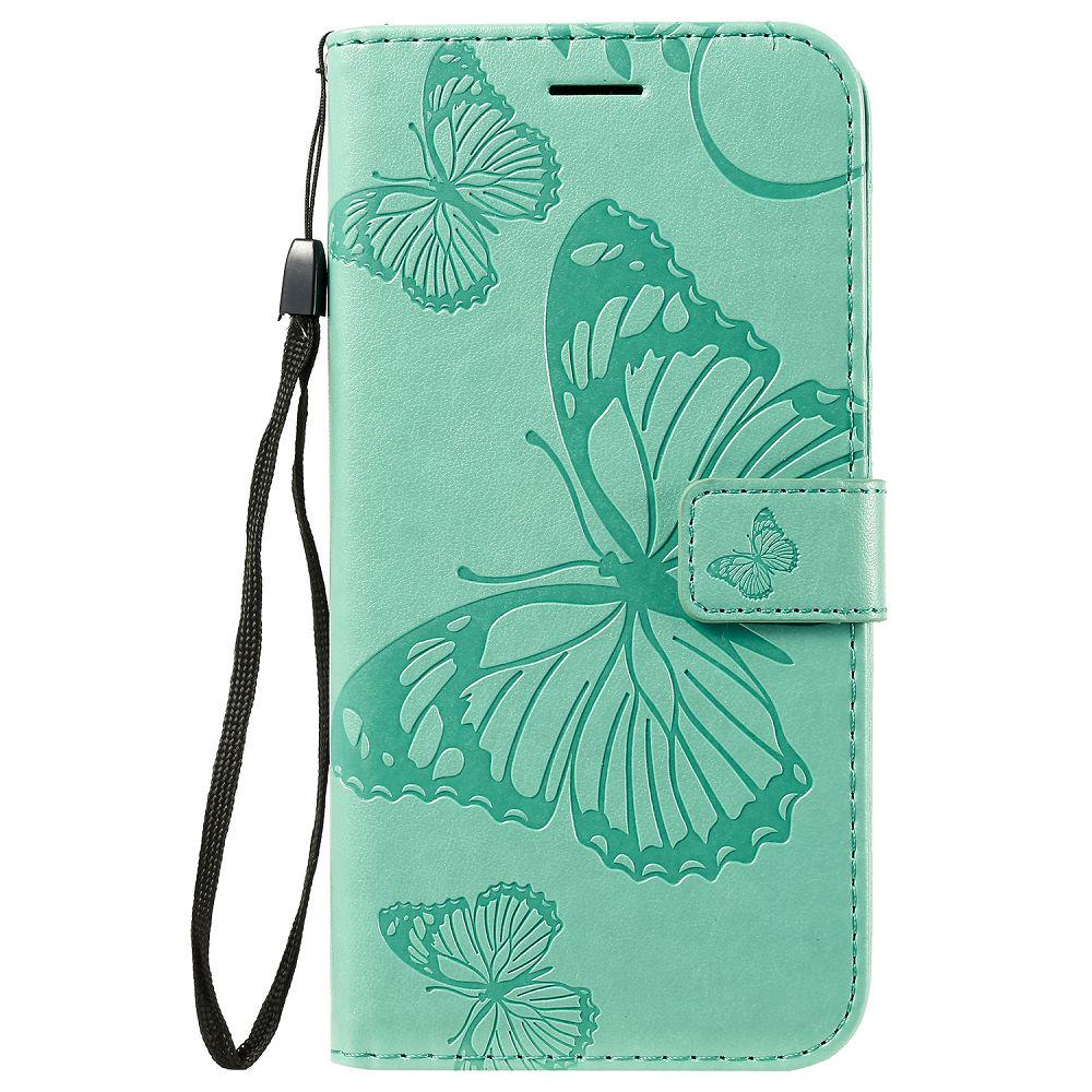Wallet Case for iPhone 11 Pro Max, Butterfly-embossed Leather Phone Case with Wrist Strap