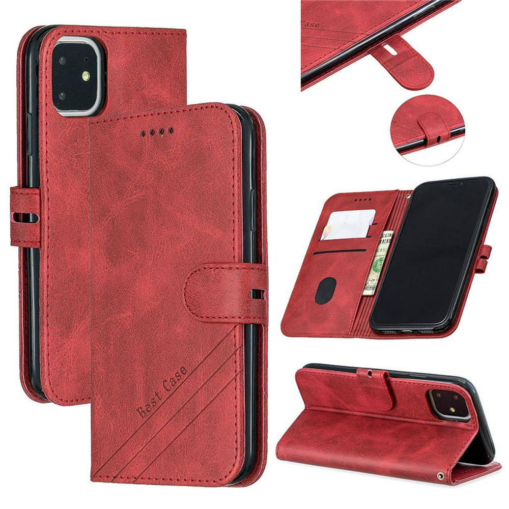 Wallet Case for iPhone 2019 6.1inch, Cowhide-like Leather Phone Case with Oblique Line in the Right Lower Corner