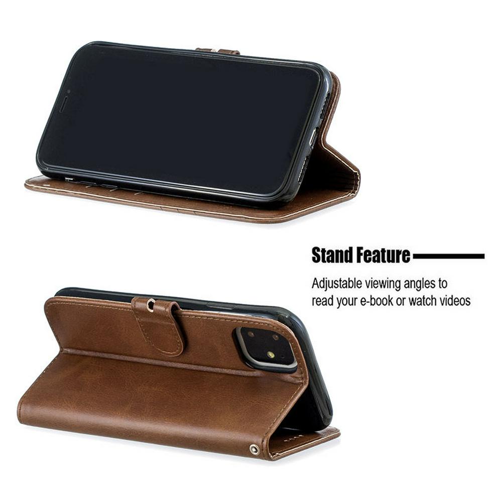 Wallet Case for iPhone 2019 6.1inch, Cowhide-like Leather Phone Case with Oblique Line in the Right Lower Corner