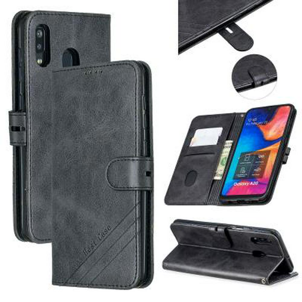 Wallet Case for Samsung Galaxy A20, Cowhide-like Leather Phone Case with Oblique Line in the Right Lower Corner