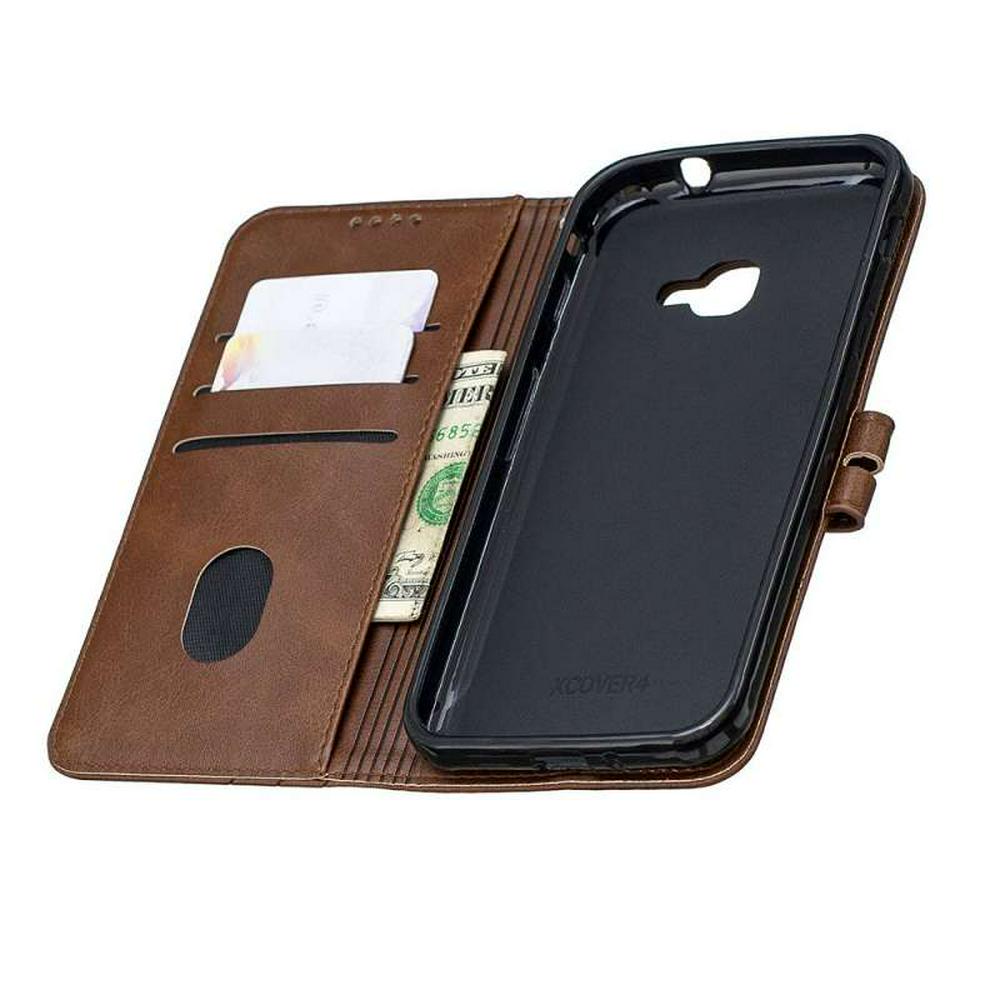 Wallet Case for Samsung Galaxy Xcover 4s, Cowhide-like Leather Phone Case with Oblique Line in the Right Lower Corner