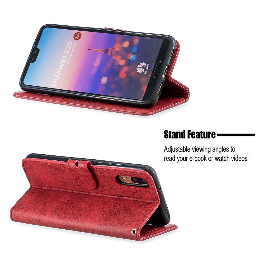 Wallet Phone Case for HUAWEI P20, Two-color Cow Leather Phone Cover with Internal Card Slots