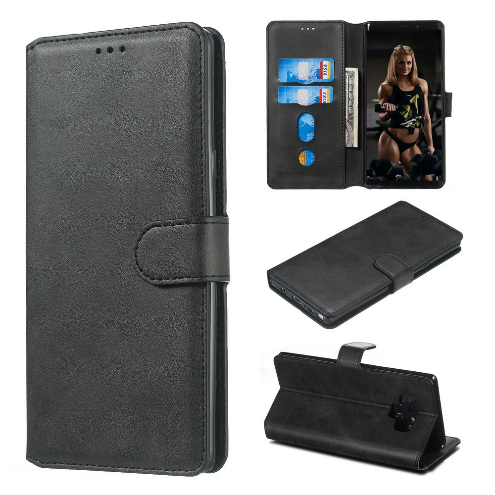 Wallet Phone Case for Samsung Galaxy Note 9, Classic Calf Pattern Solid Color Leather Phone Cover With Card Slot