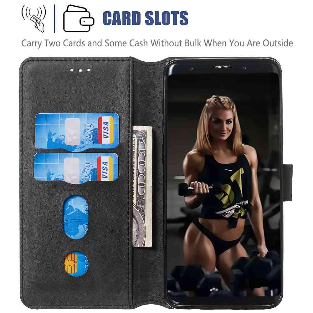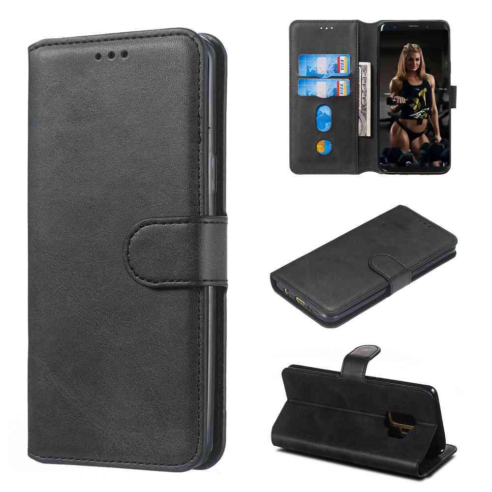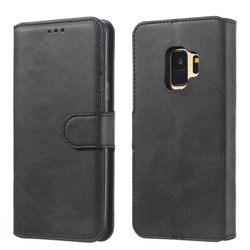 Wallet Phone Case for Samsung Galaxy S9, Classic Calf Pattern Solid Color Leather Phone Cover With Card Slot