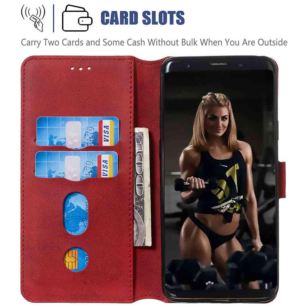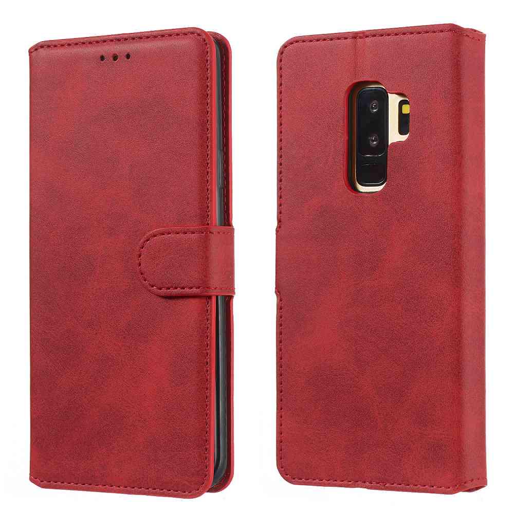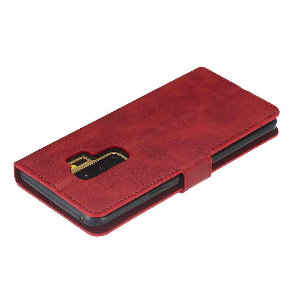 Wallet Phone Case for Samsung Galaxy S9 Plus, Classic Calf Pattern Solid Color Leather Phone Cover With Card Slot