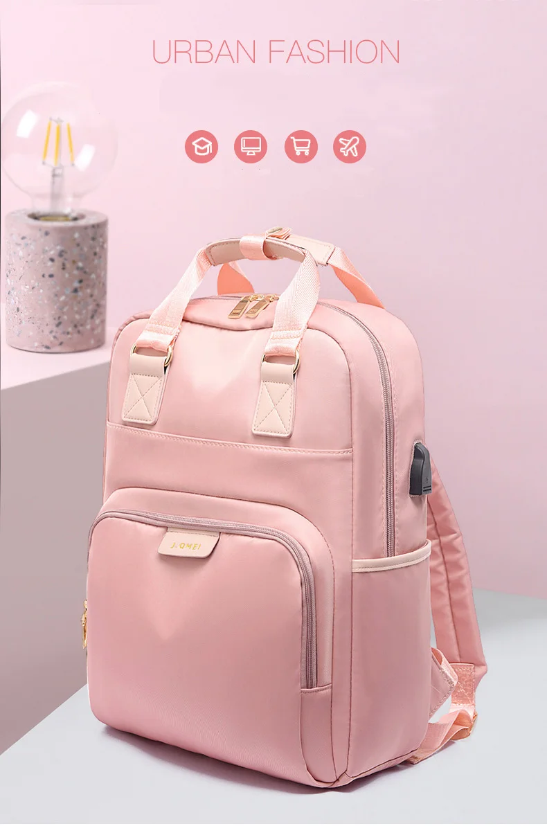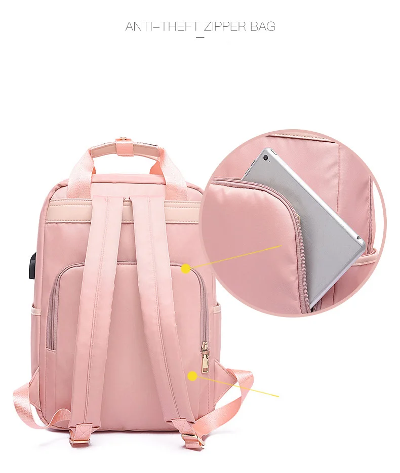 Waterproof Bagpack Women 14 Inch Laptop USB Charger Back Pack Bag School Teenager Bag
