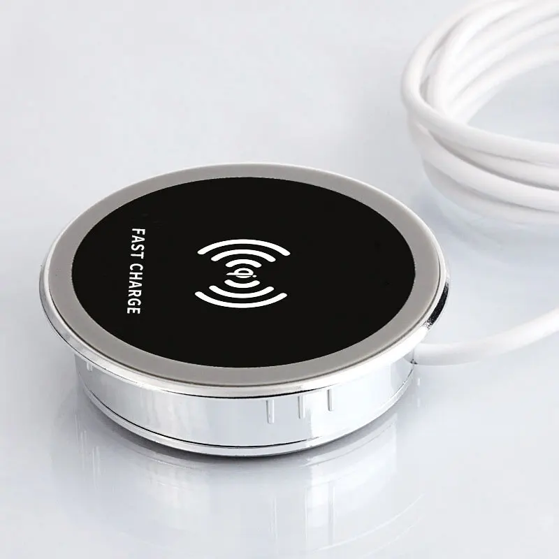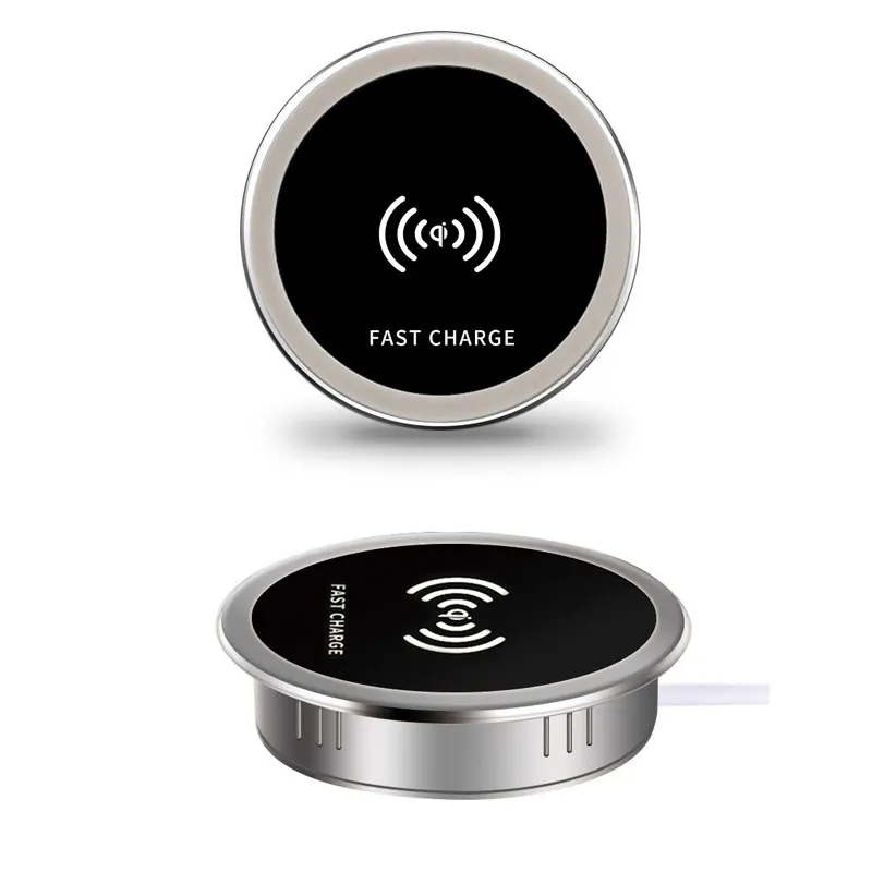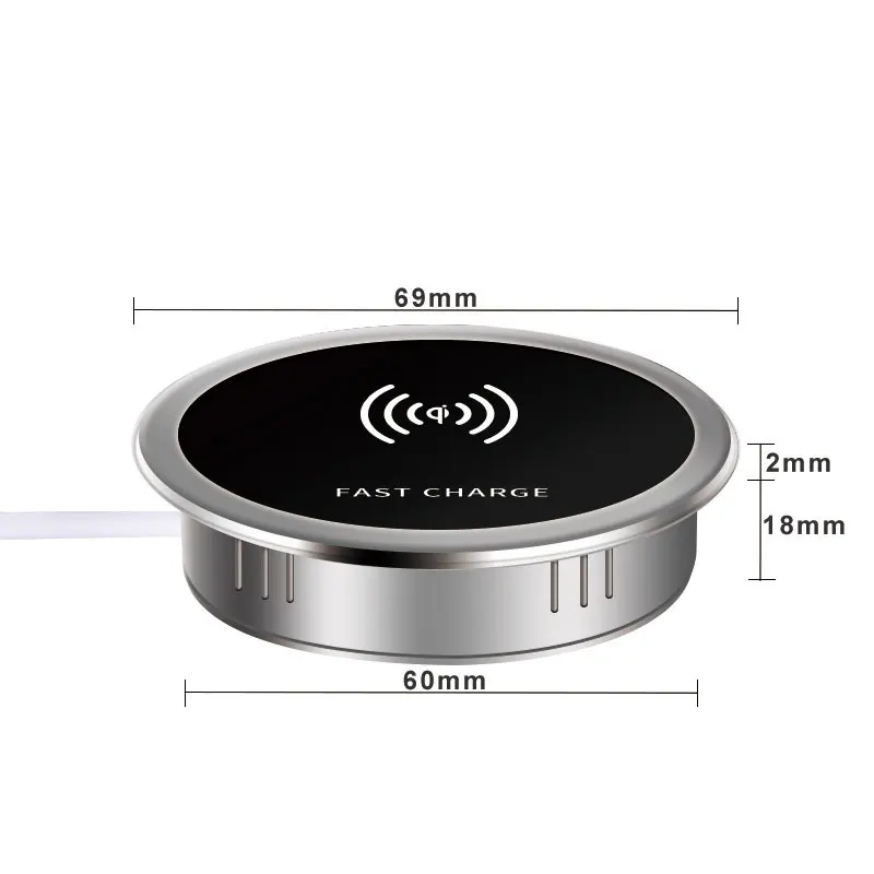 The table charging pad is only 6.9*1.8cm/ 2.71*0.71inch (D*H), compact and small, with embedded installation, which will not occupy much space on table. Wireless charging function