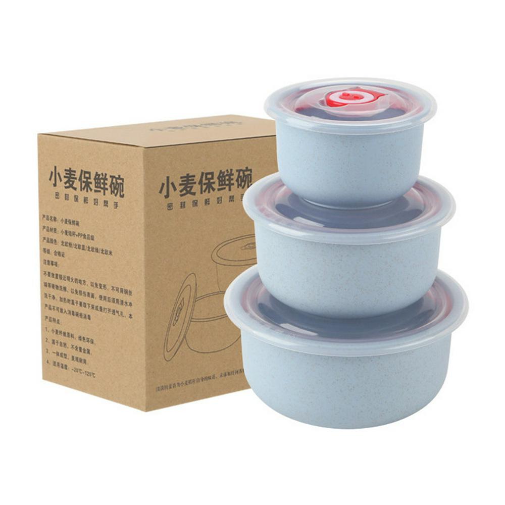 Wheat Straw Preservation Microwave Sealed Bowl Three-piece Set Plastic Lunch Box