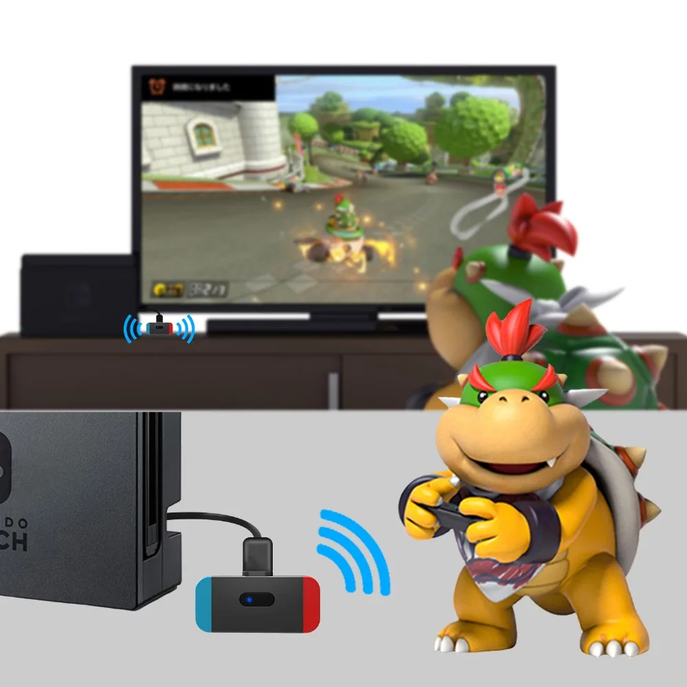 This Bluetooth adapter allows you to stream for Switch audio directly to your favorite wireless headphones-actually any Bluetooth enabled receivers incl. portable speakers, home stereo. Whether in room or on the go, you can enjoy the full of gaming fun.