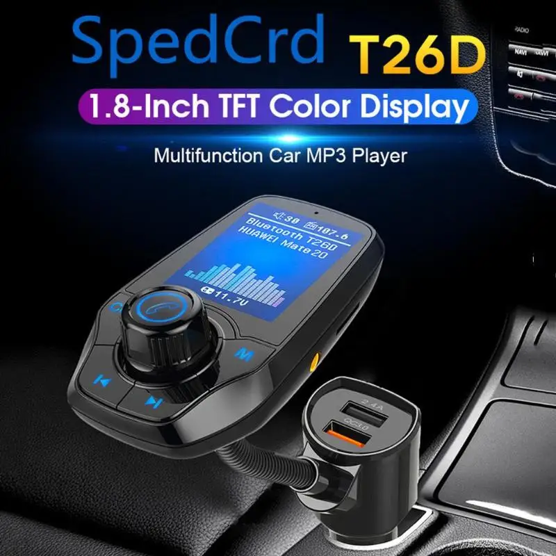 Color LCD screen shows volume, frequency, connected device and information of audio that is being played.