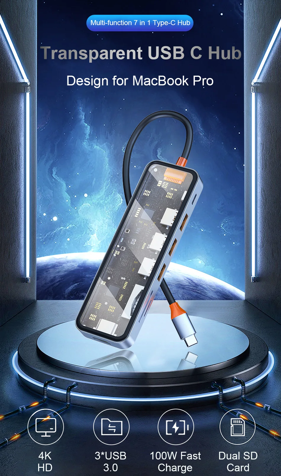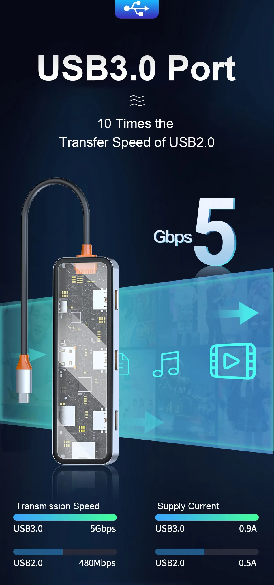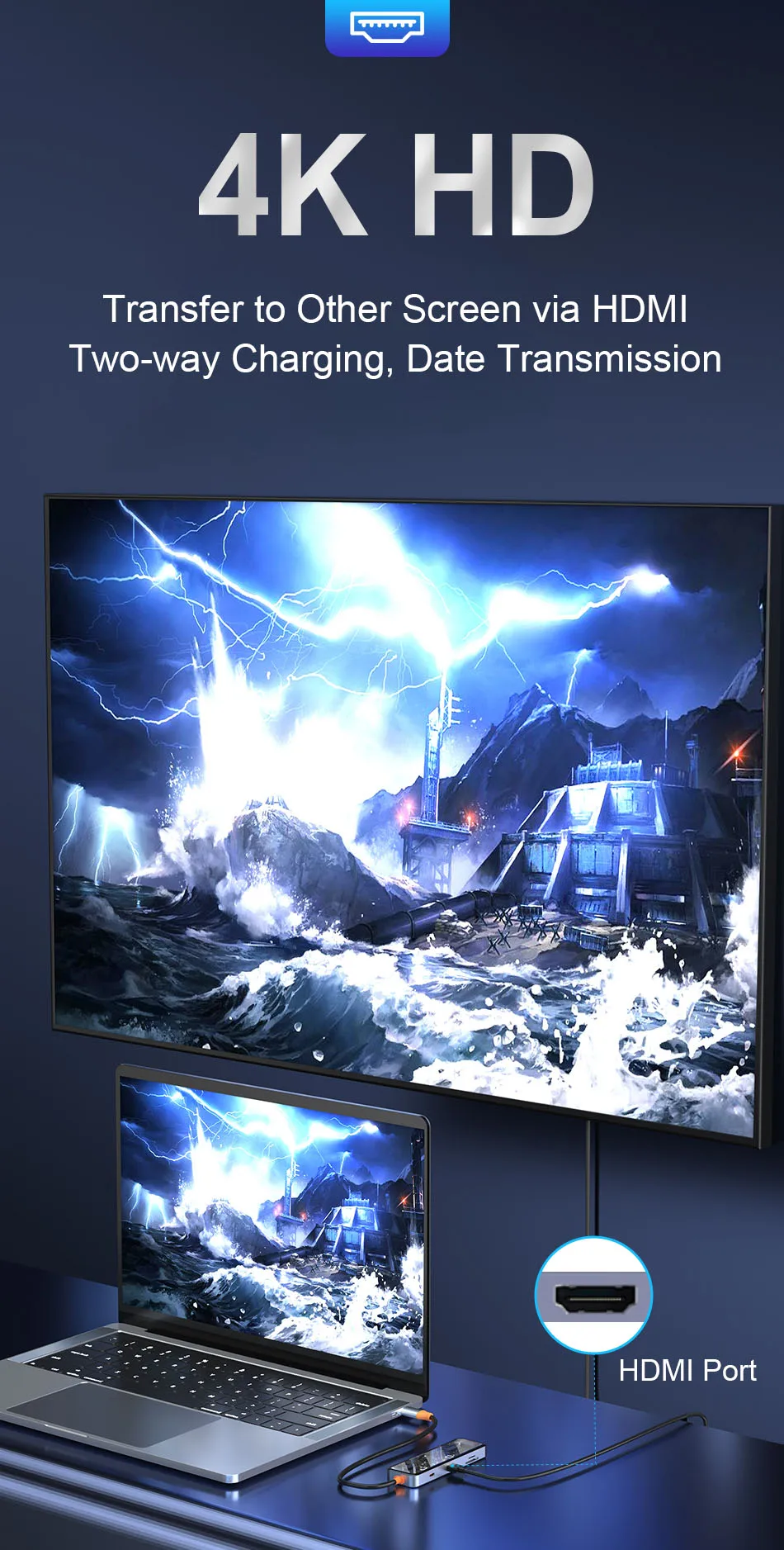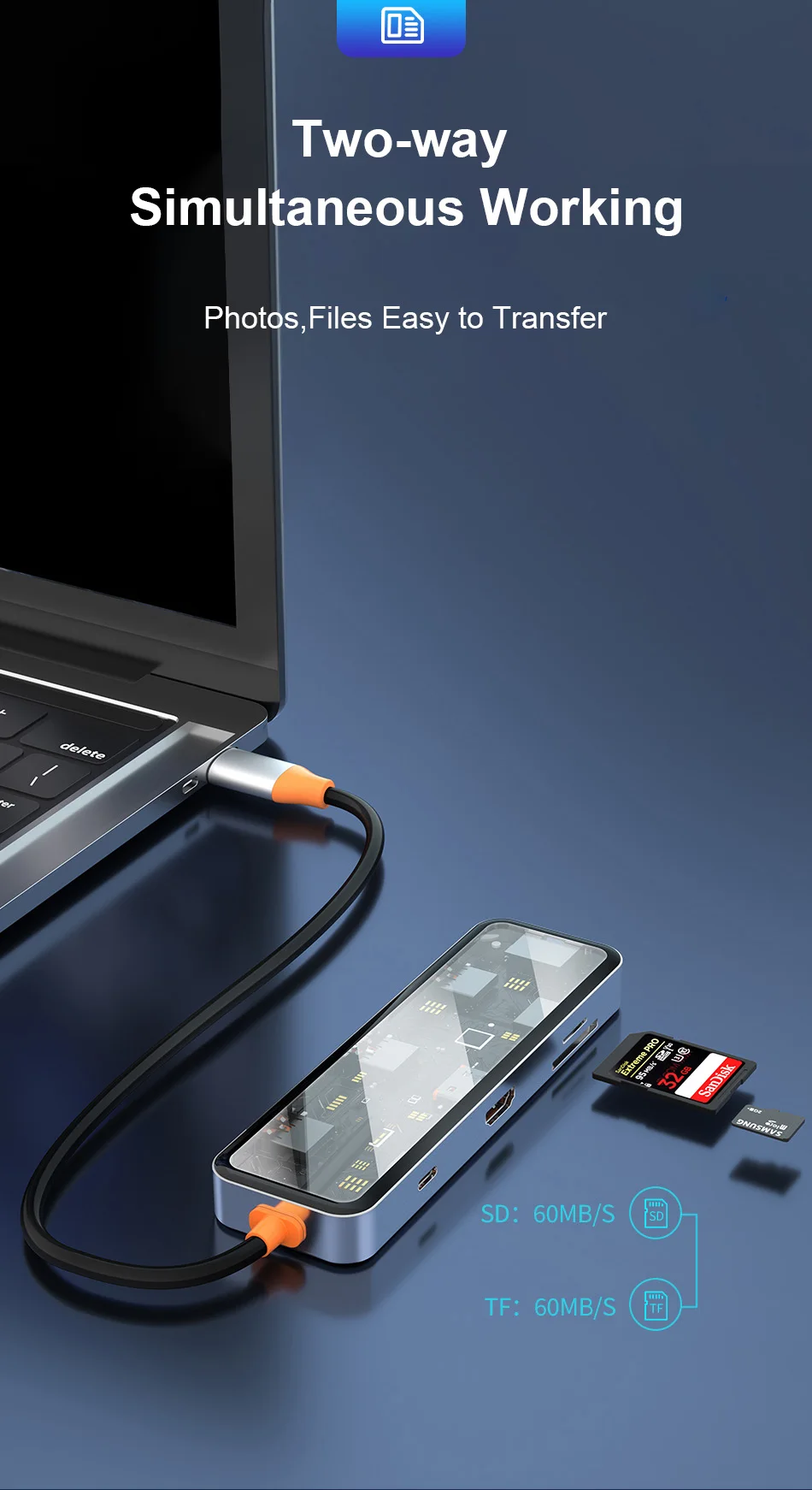 USB3.0*2+USB2.0*1+SD/TF(3.0)+HDMI(4K30)+PD+RJ45
