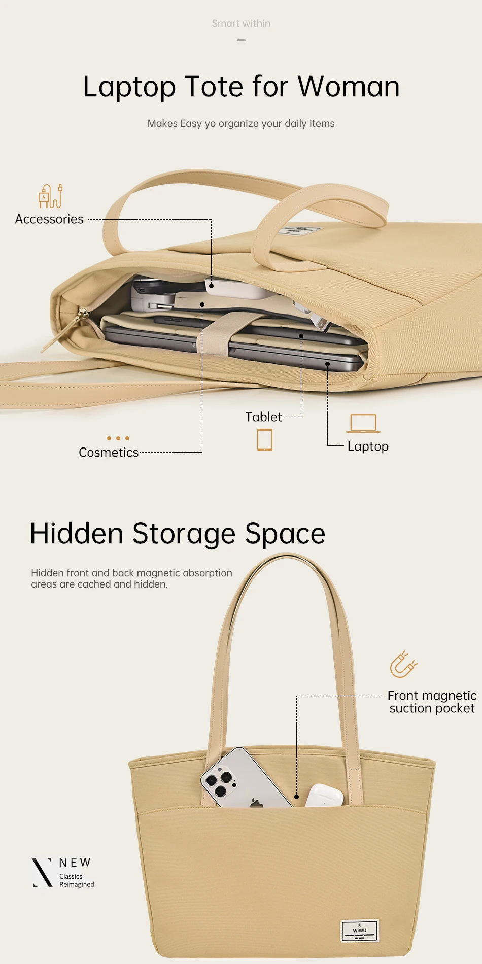 WiWU Laptop Tote Bag for MacBook Air 13.6 M2 Pro 14 Large Capacity Computer Bag for MacBook Pro 16.2 Waterproof Laptop Bag Women