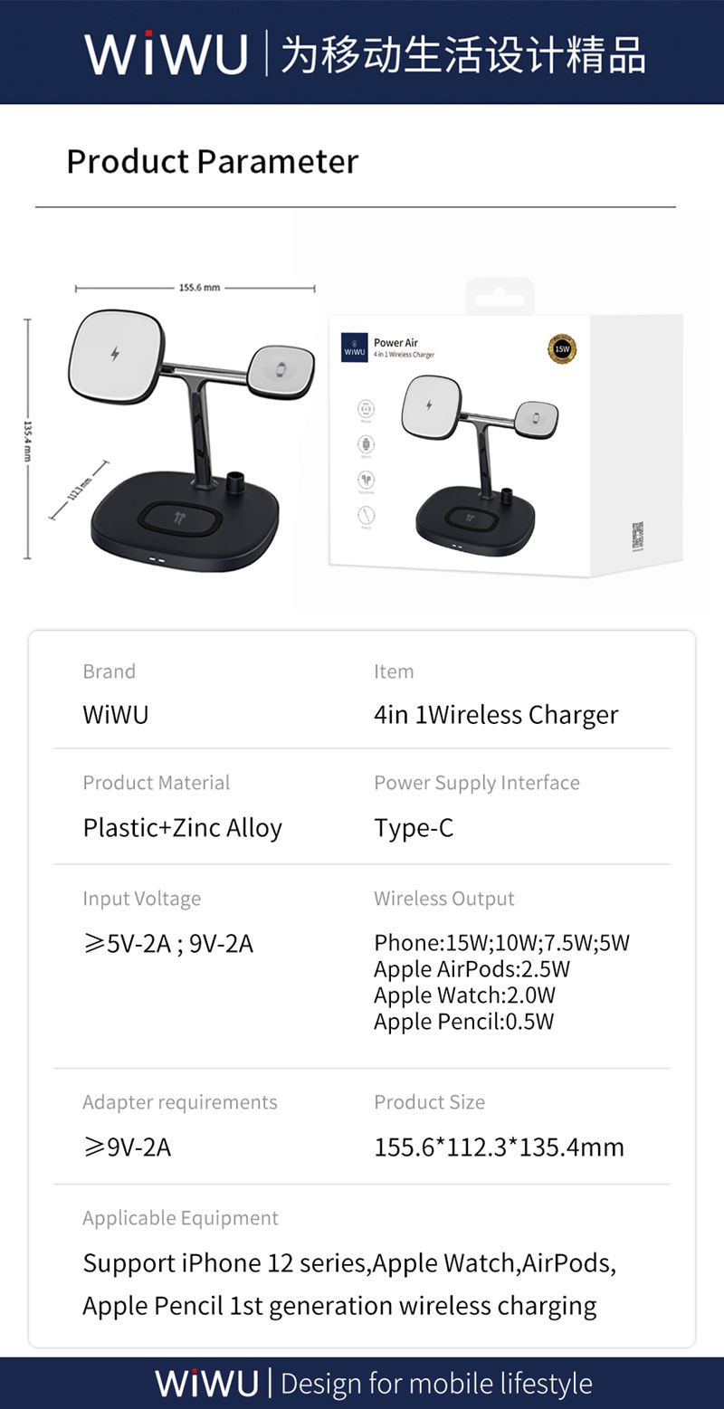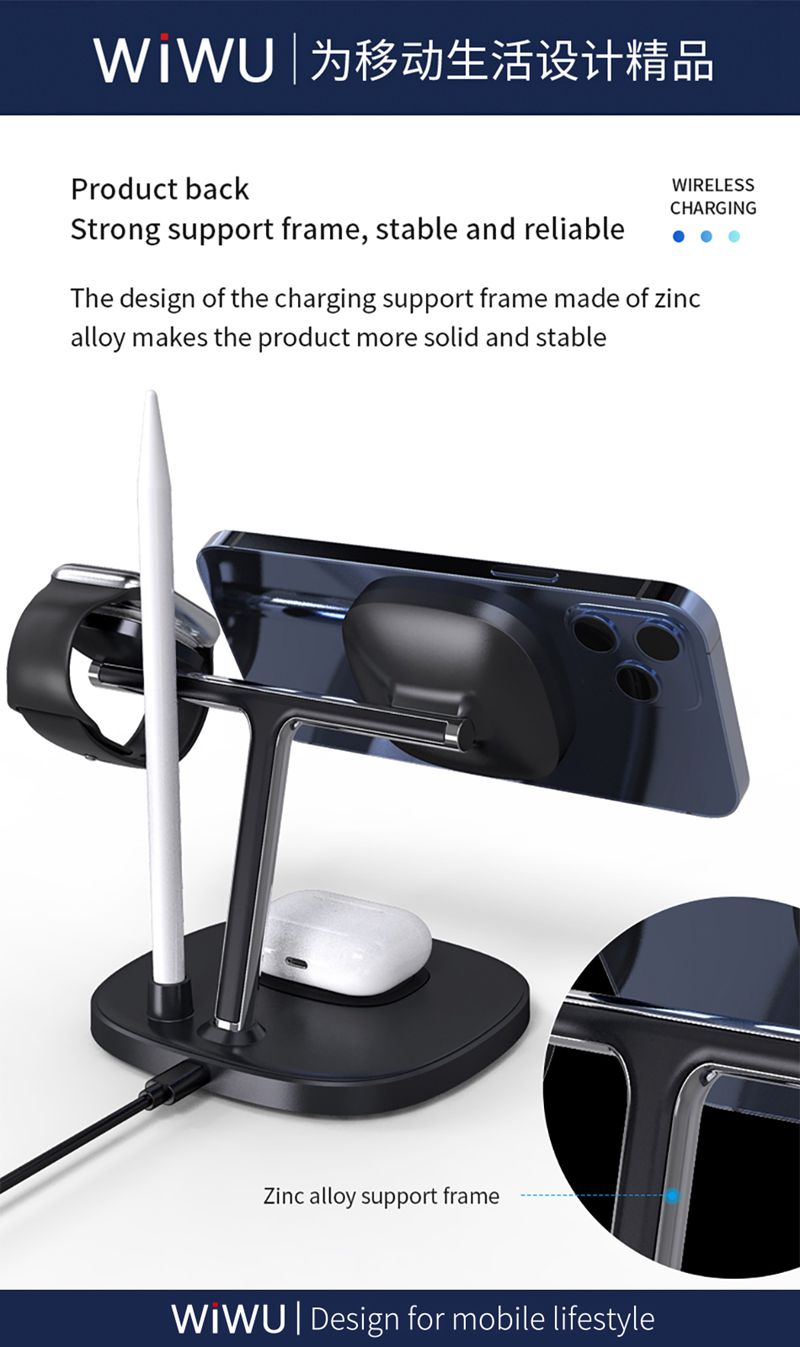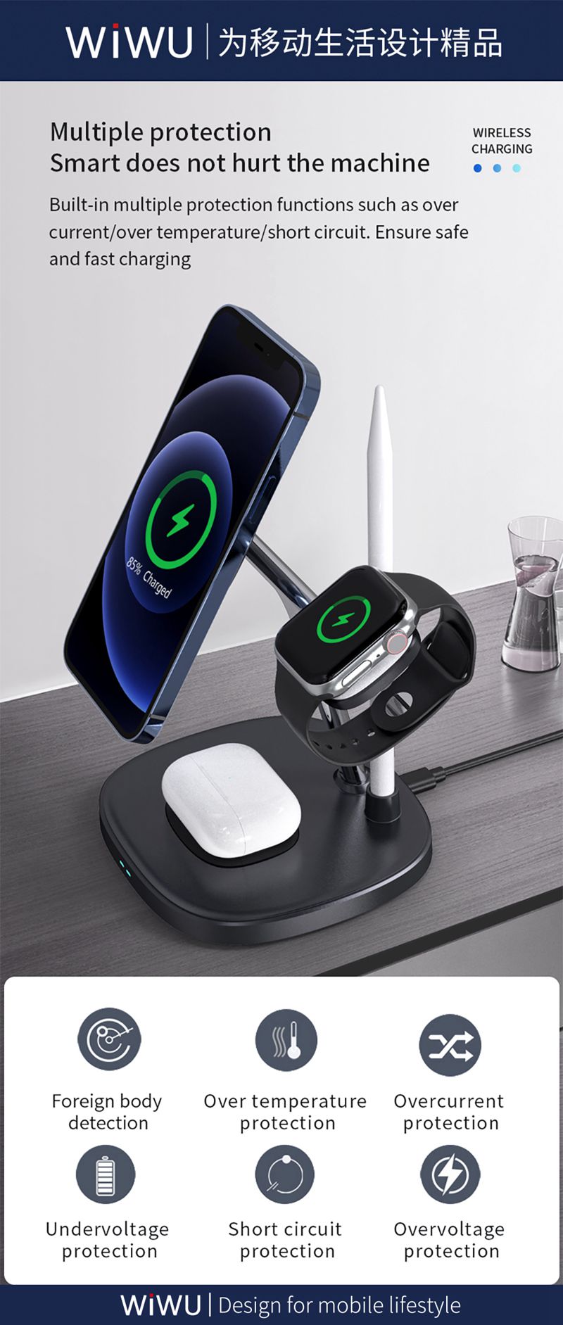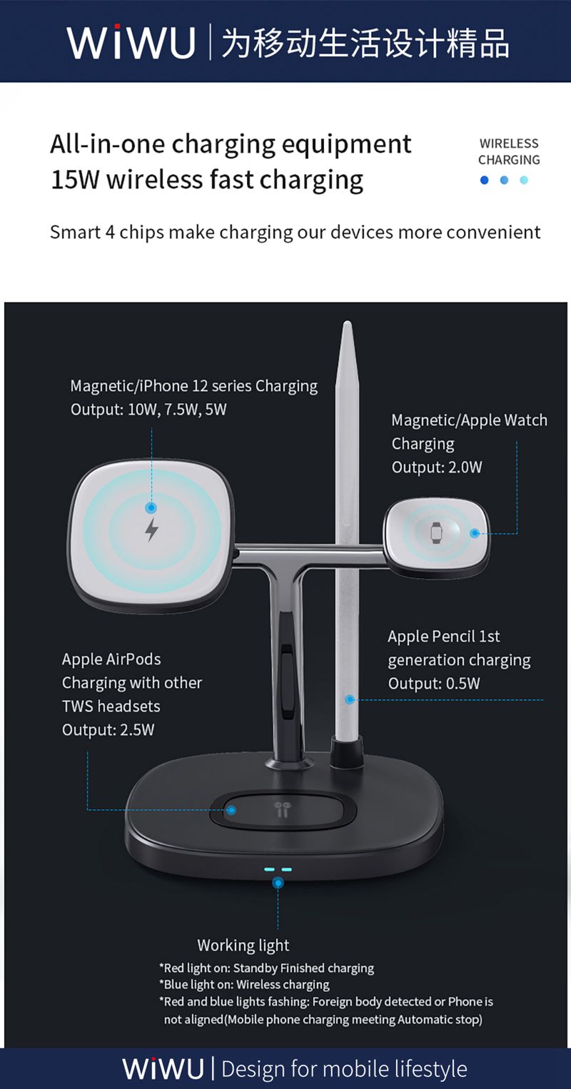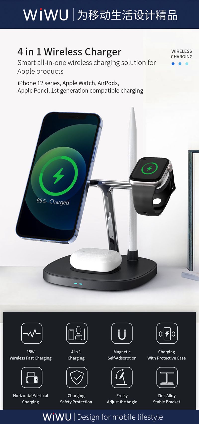 Smart all-in-one wireless charging solution for Apple products, for Phone 12 series, for iWatch, for AirPods, for Apple Pencil 1st generation compatible charging