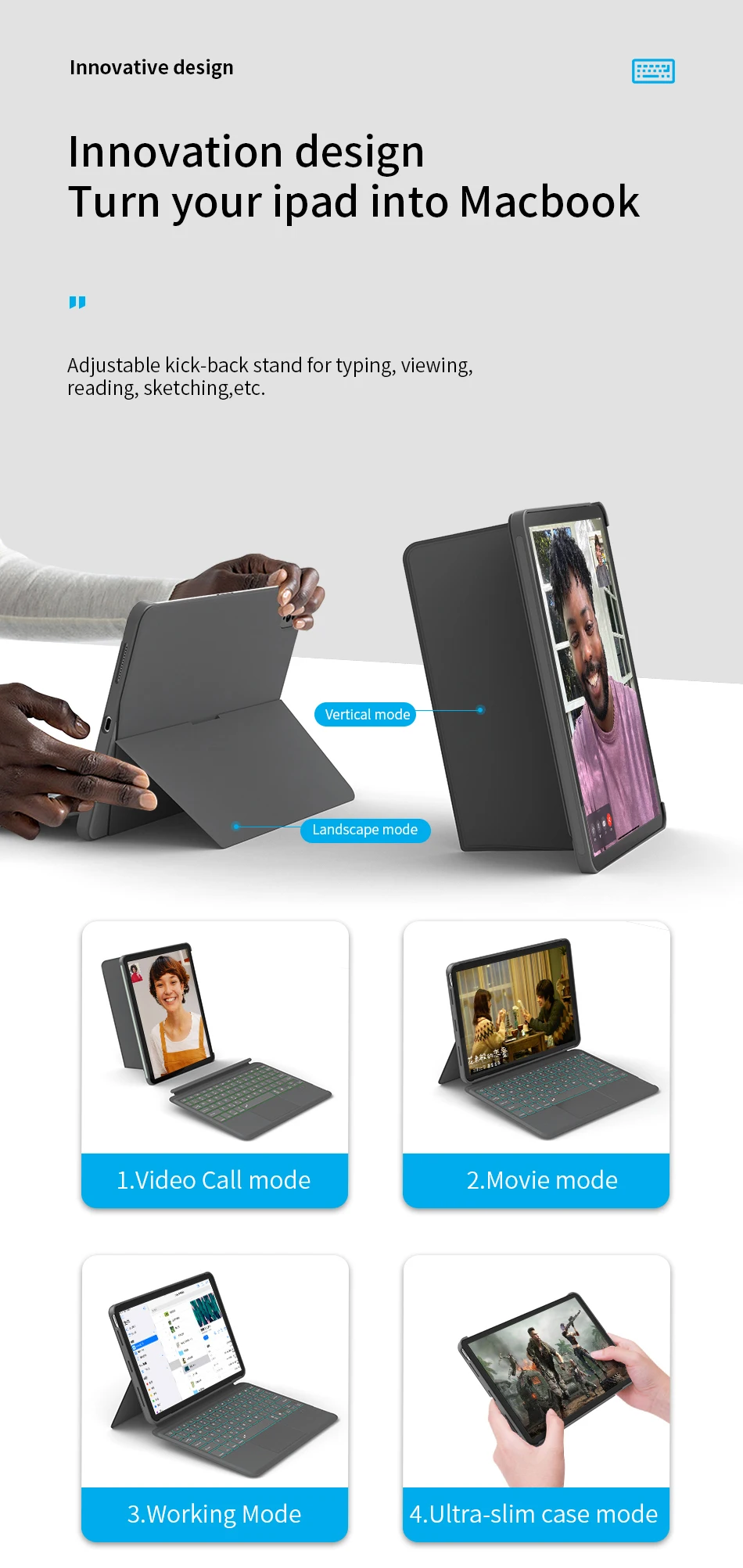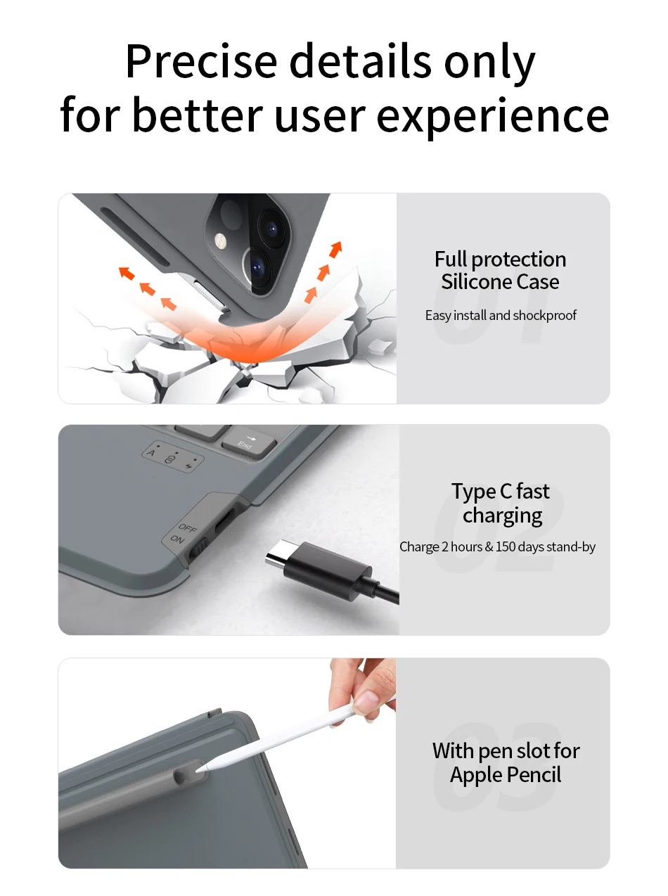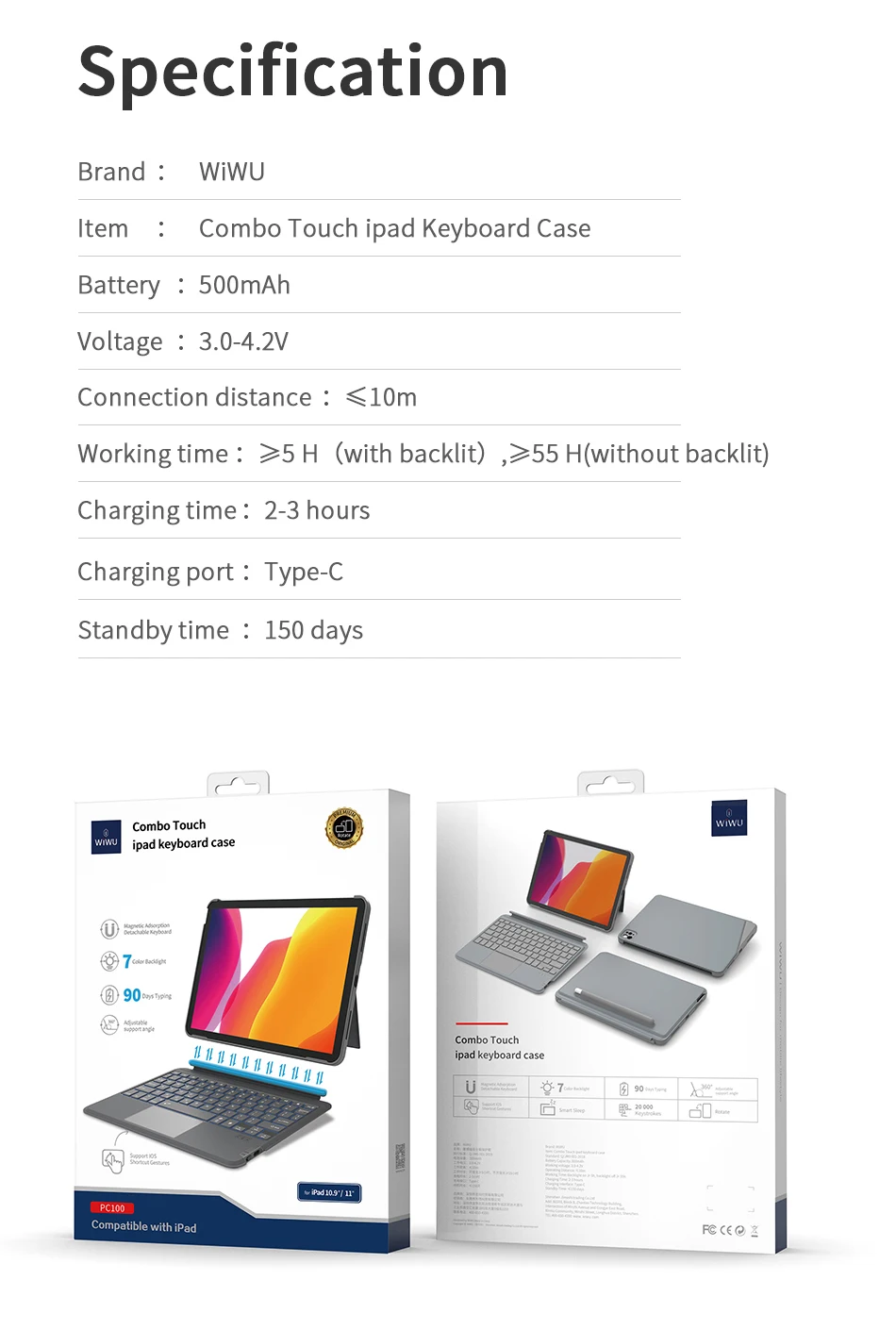 WiWU Newest Keyboard for iPad Air 5 4 Detachable Bluetooth Keyboard for iPad 11 10.9 10.5 10.2 Pen Slot Wireless Keyboard