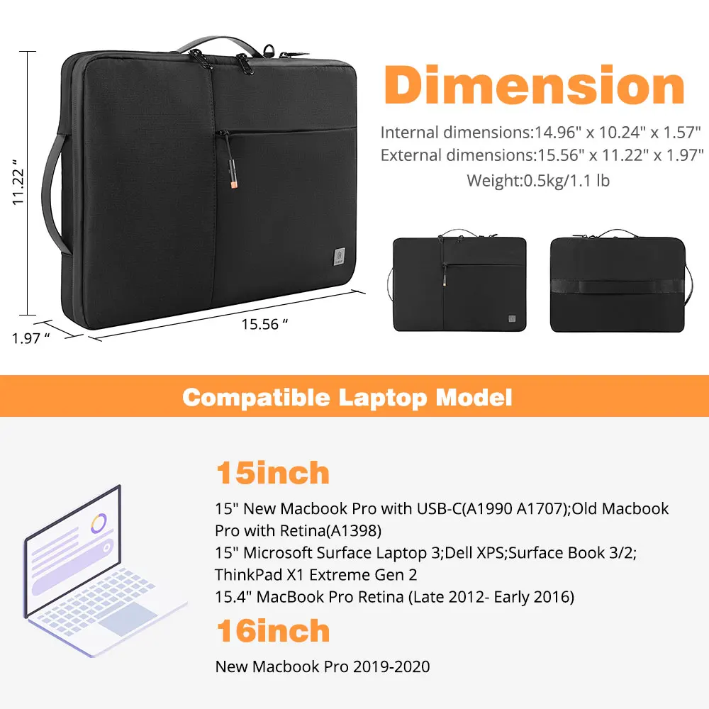 8. Size: 13.3 inch 33x24x4.5cm, 14 inch 36.5x26x4.5cm, 15.4 inch 39x27.5x4.5cm, 15.6 inch 42x29x4.5cm