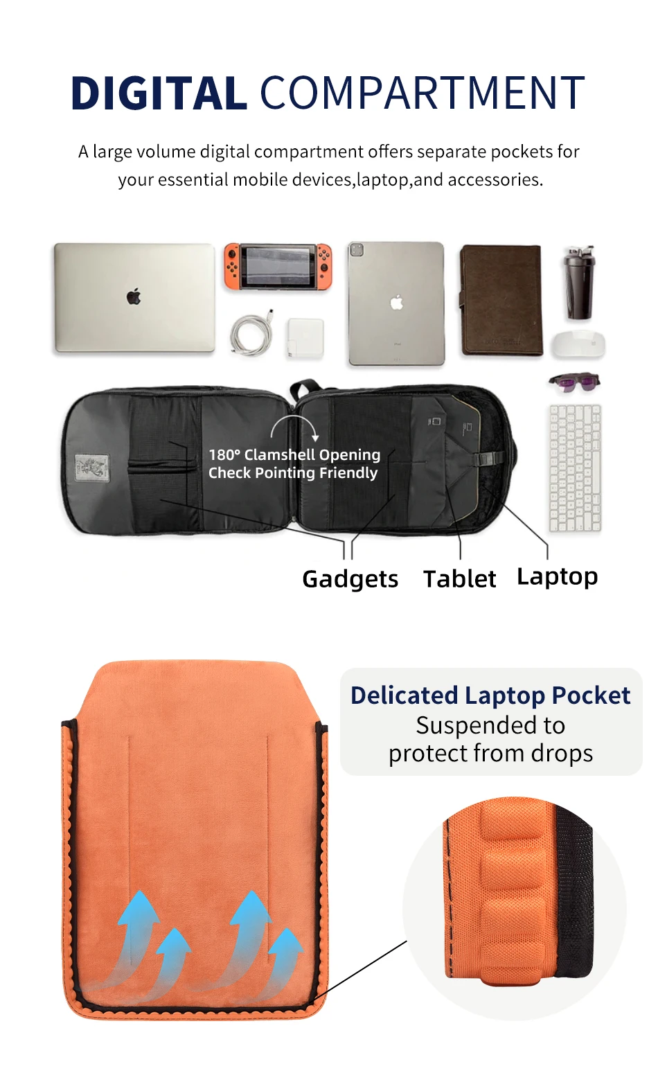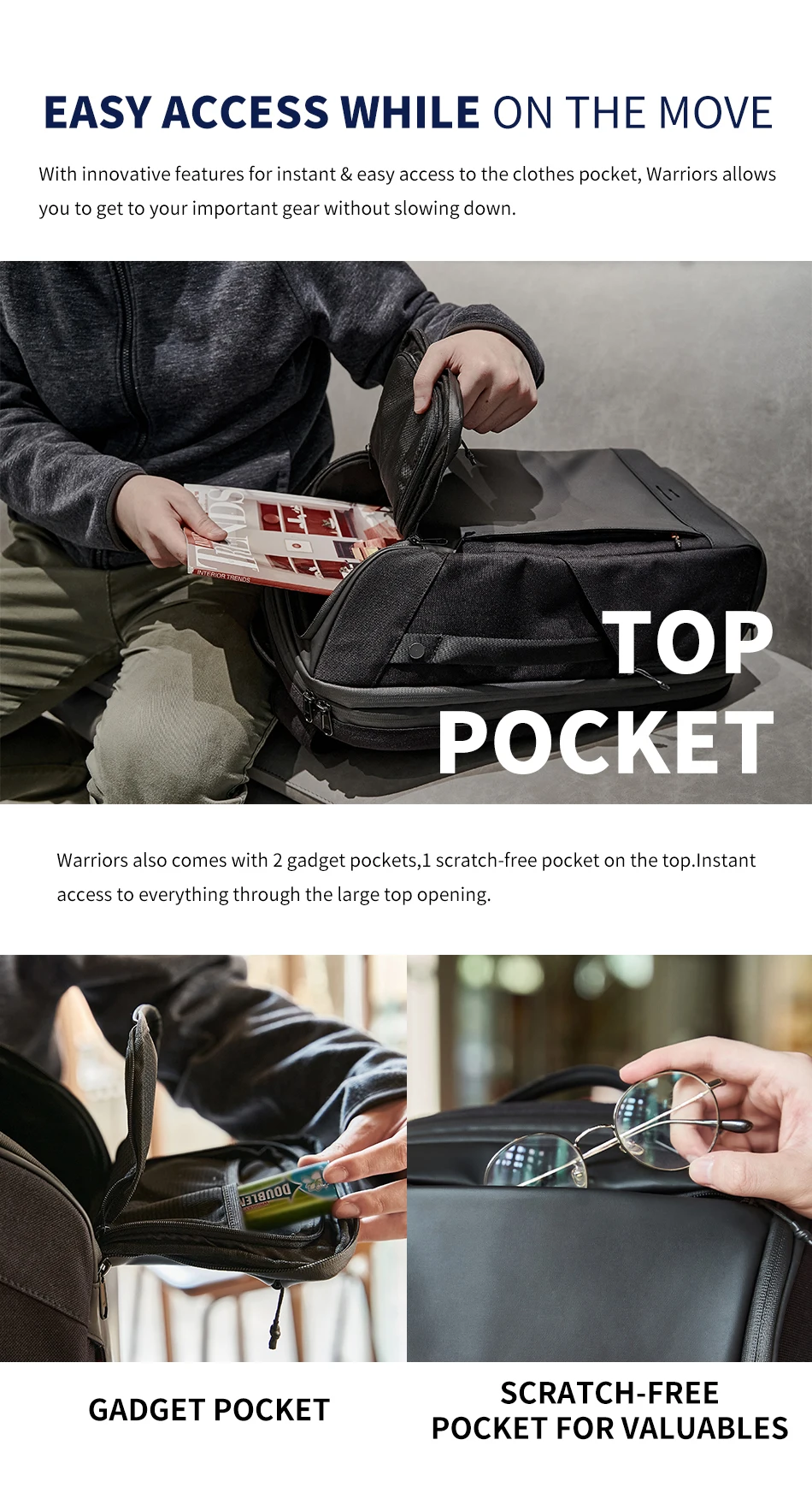 WiWU Travelling Backpack with Large Capacity Daily Backpack Waterproof Charging Backpack for MacBook Pro 16.2 Laptop Backpack 15.6