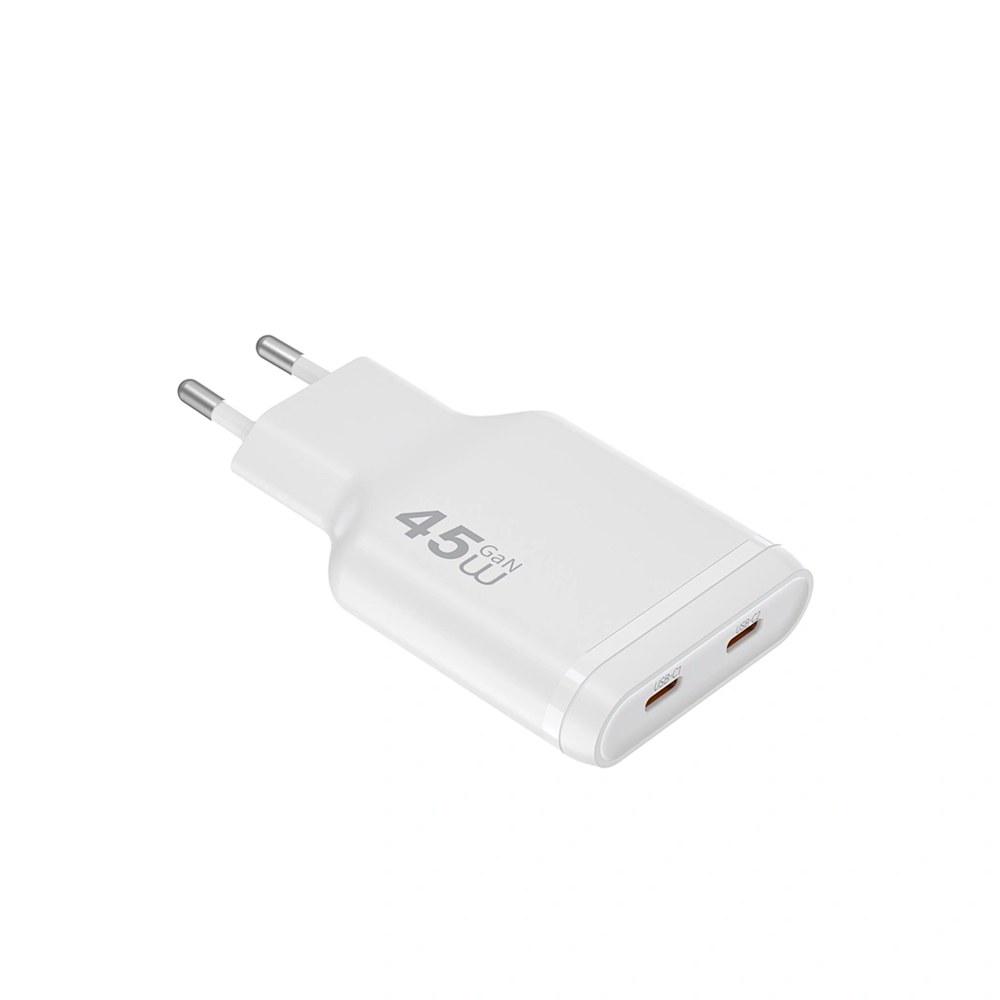 Power up your essentials with the WiWU 45W GaN Charger. Engineered for efficiency and portability, this compact adapter is the perfect travel companion for your modern devices. It features two USB-C ports, allowing you to charge two devices simultaneously without waiting. The intelligent internal chip ensures a safe, cool, and stable charge, while multiple layers of protection guard your phone against electrical hazards. Housed in a durable, flame-retardant PC shell and designed with a universal wide-voltage input, this exquisite charger is ready to go wherever you do.