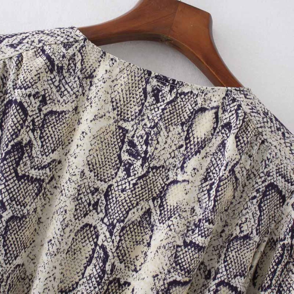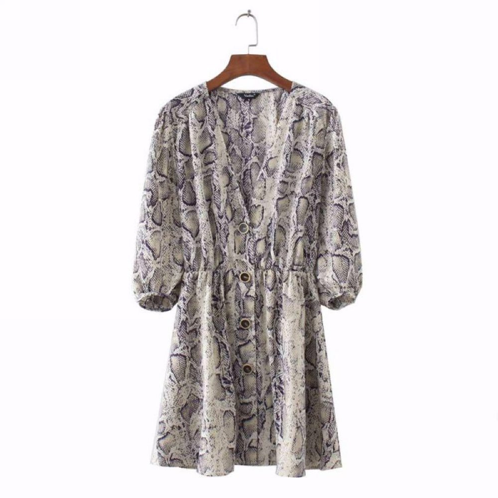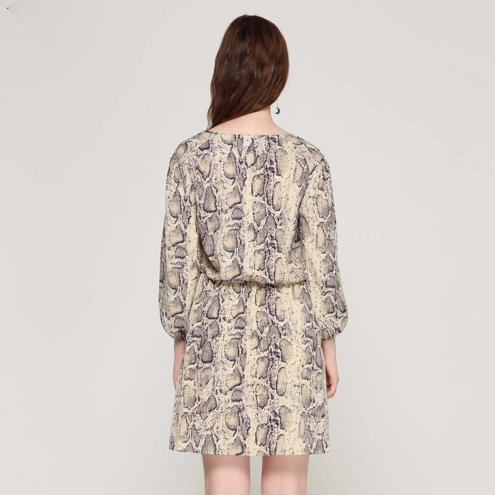 Women Sexy V-neck Snake Pattern Dress Elastic Waist