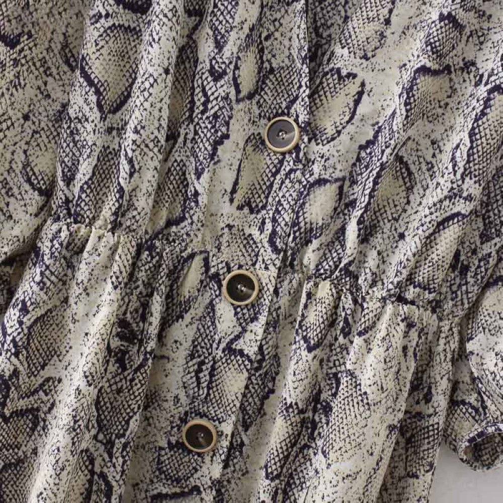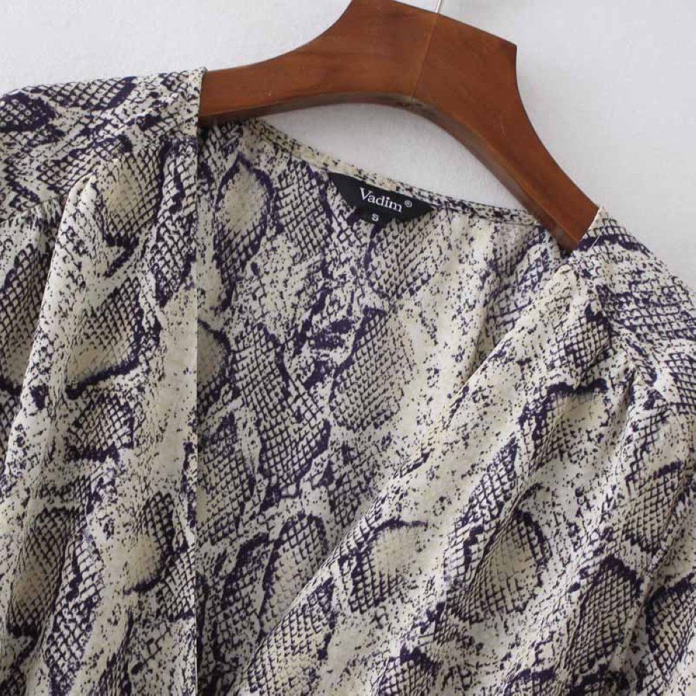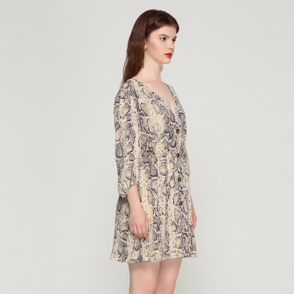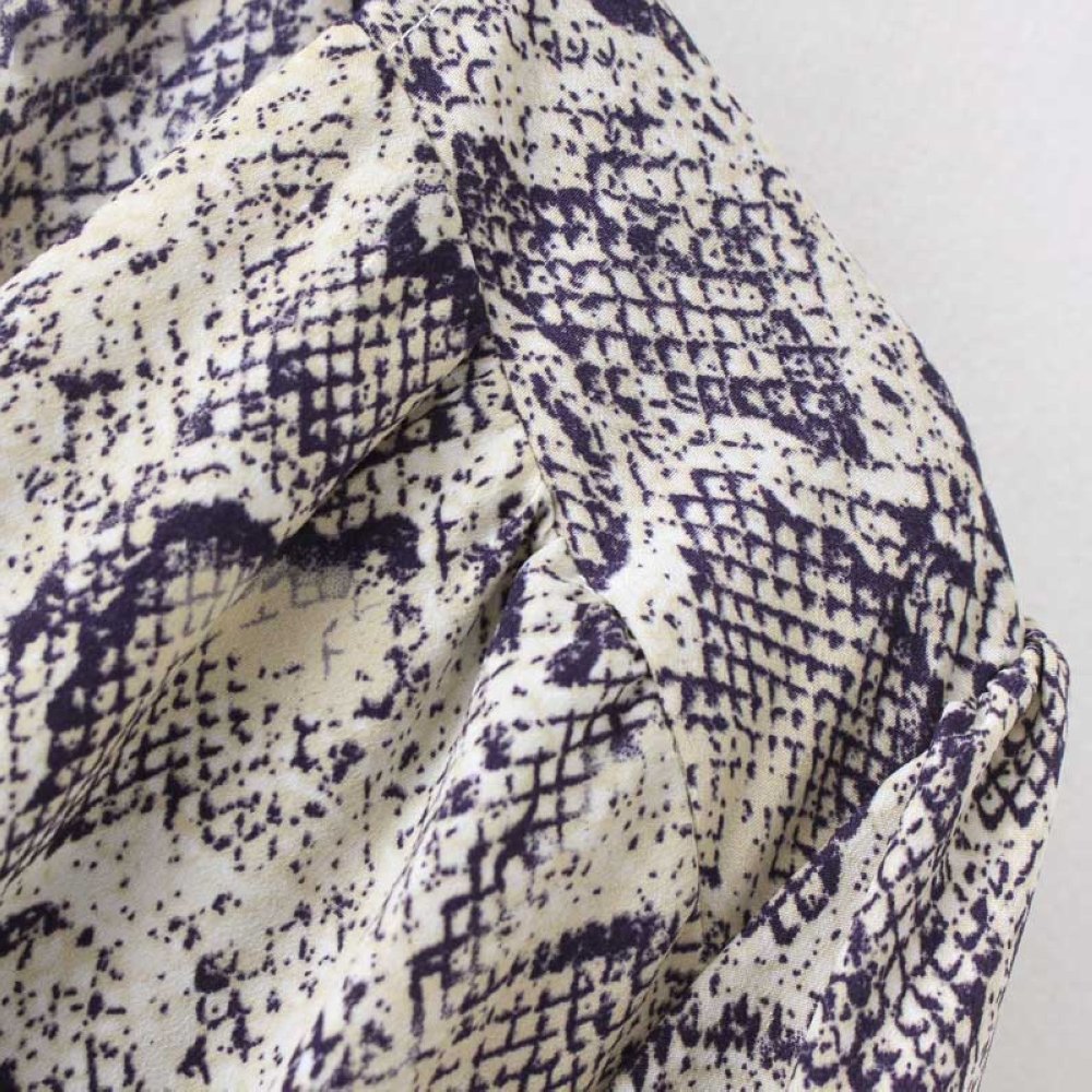 Women Sexy V-neck Snake Pattern Dress Elastic Waist