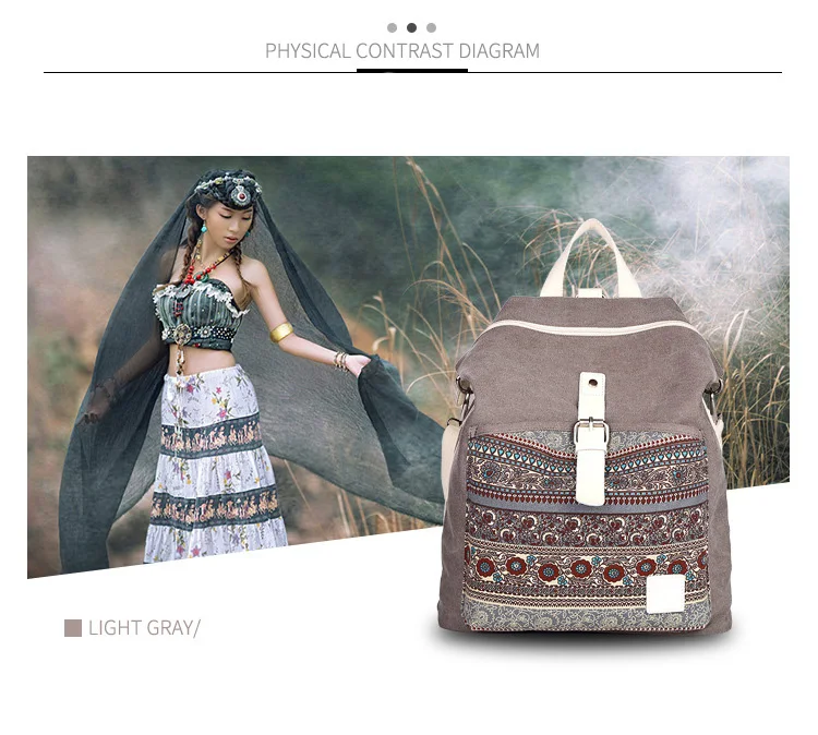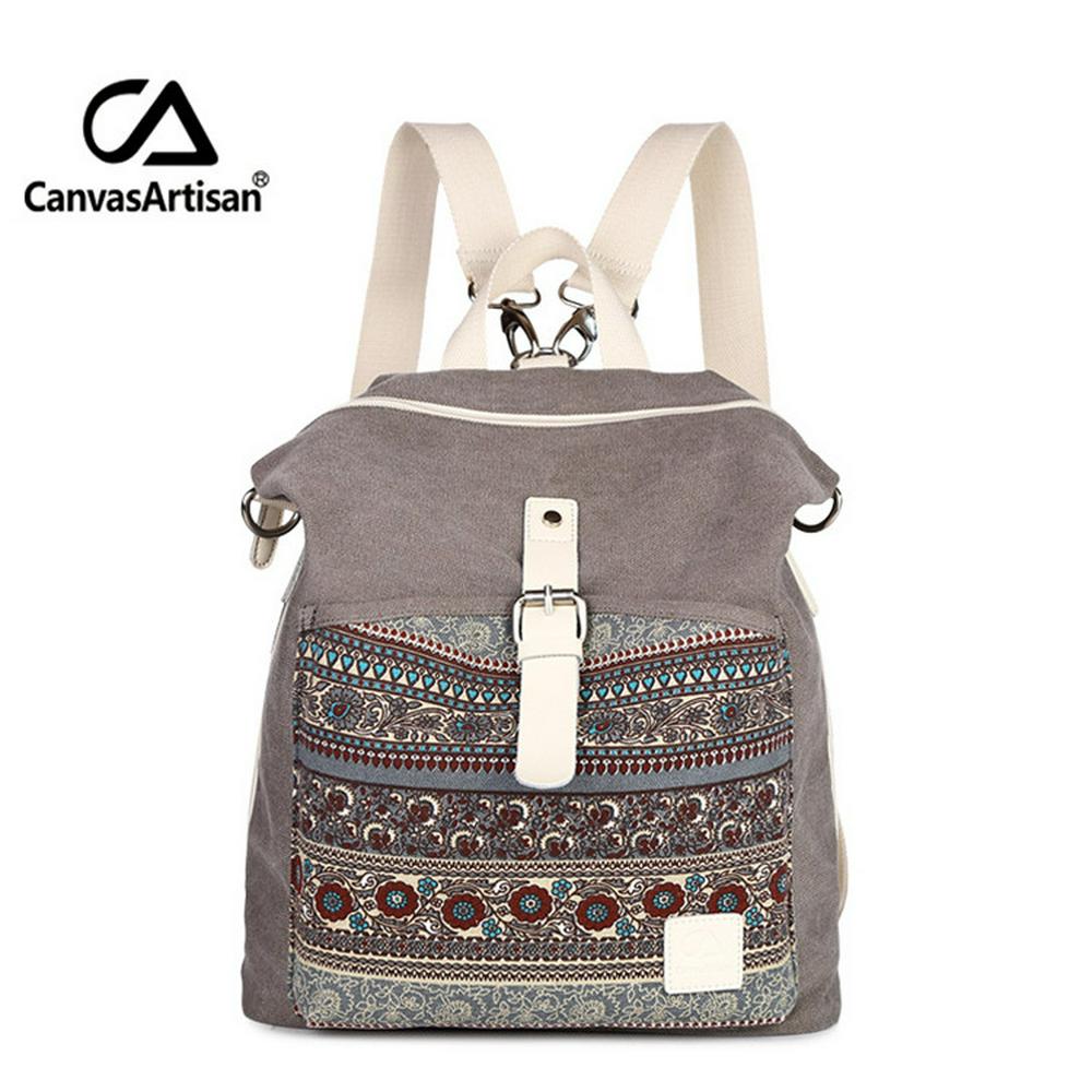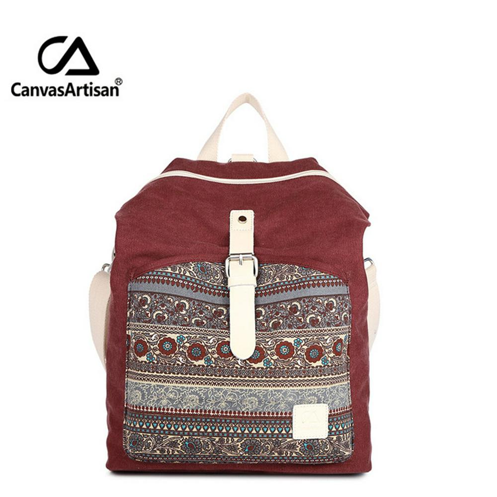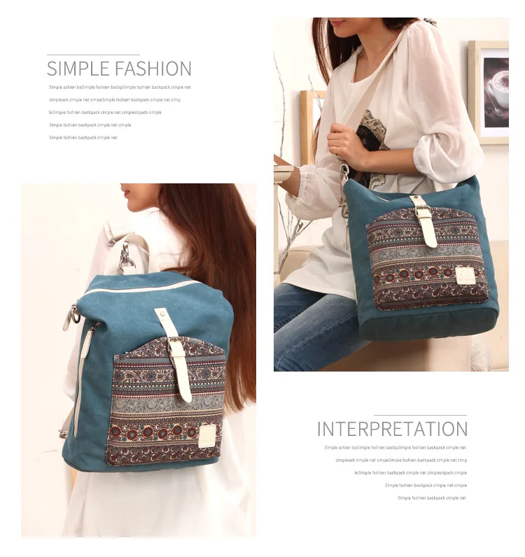 Women's Backpack Shoulder Bag Canvas Flower Package Bag