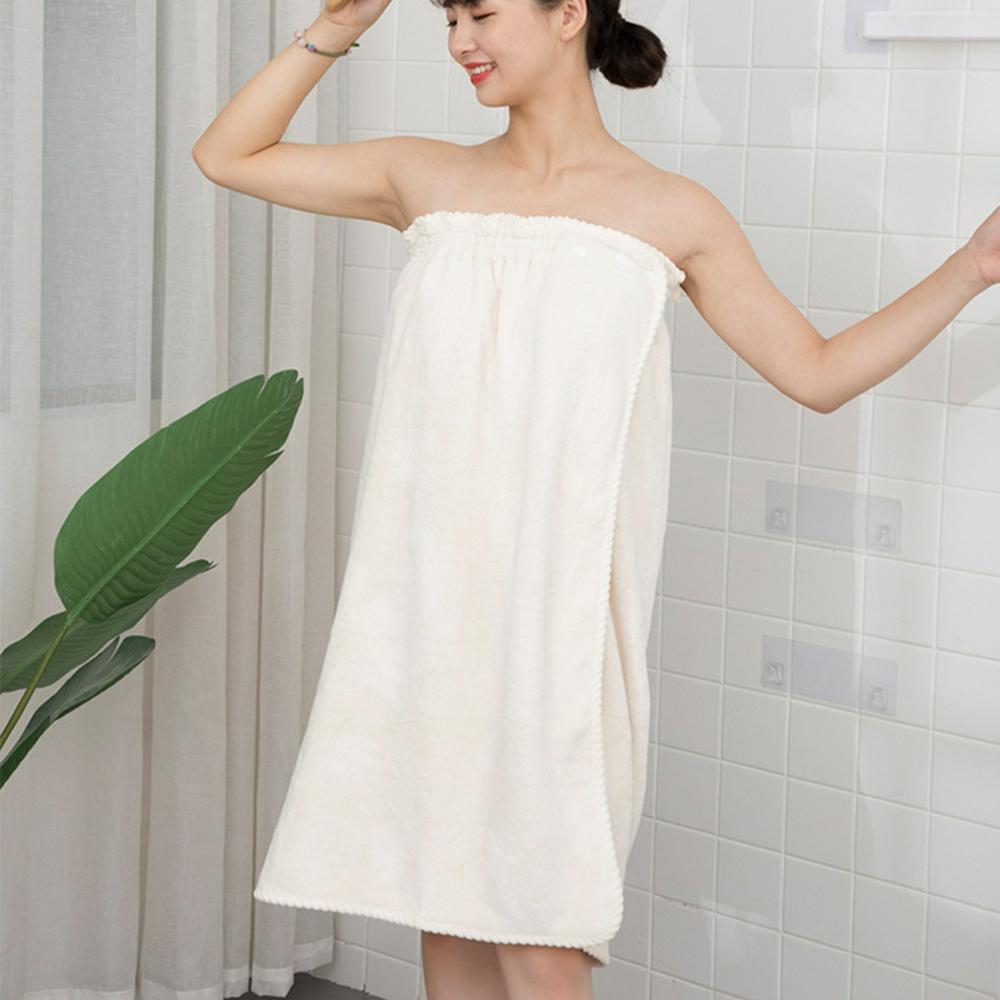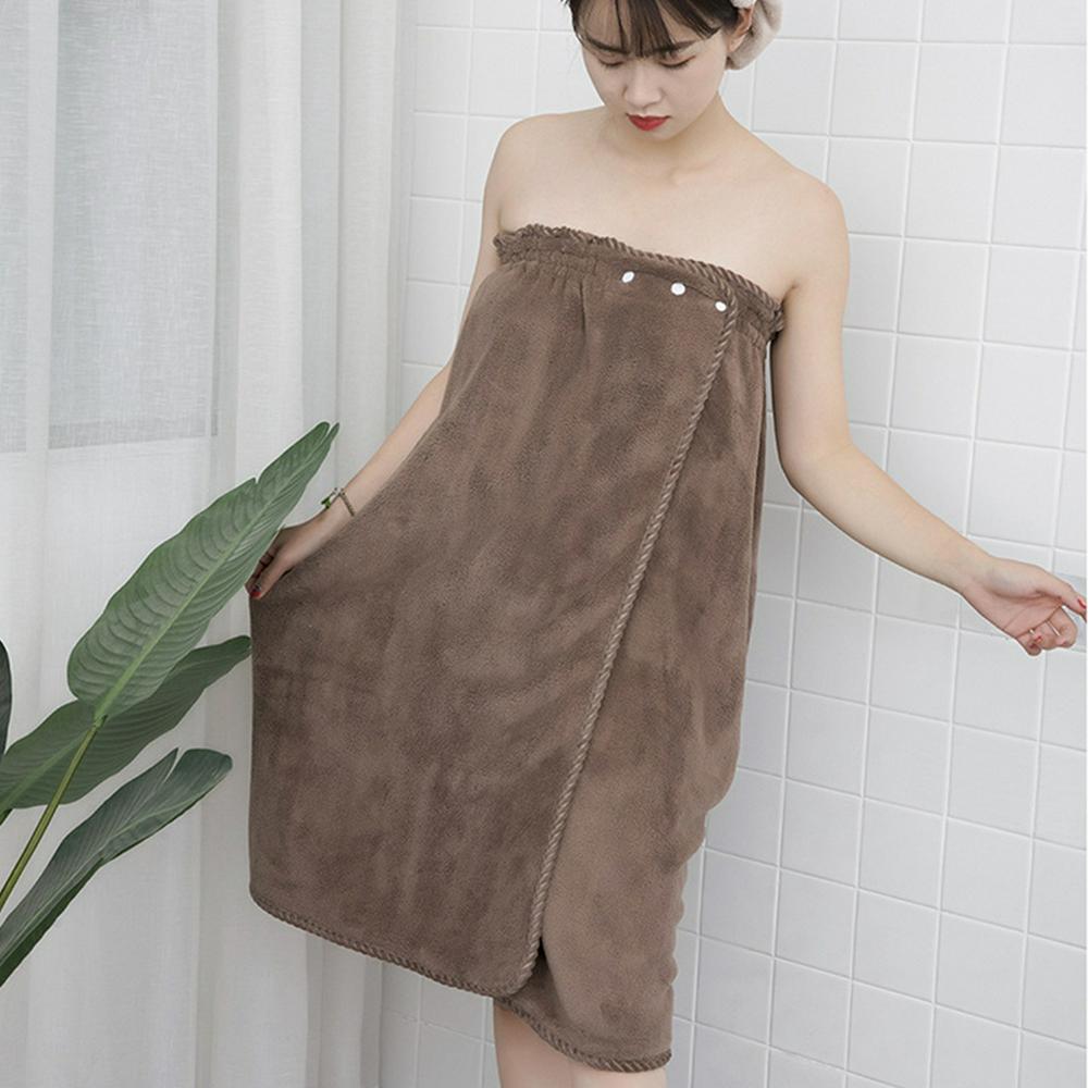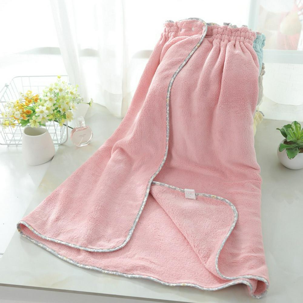 Women's Bath Wrap Trimmed with Fluffy Fabric Absorbent Bathrobe with 3 Snap Buttons