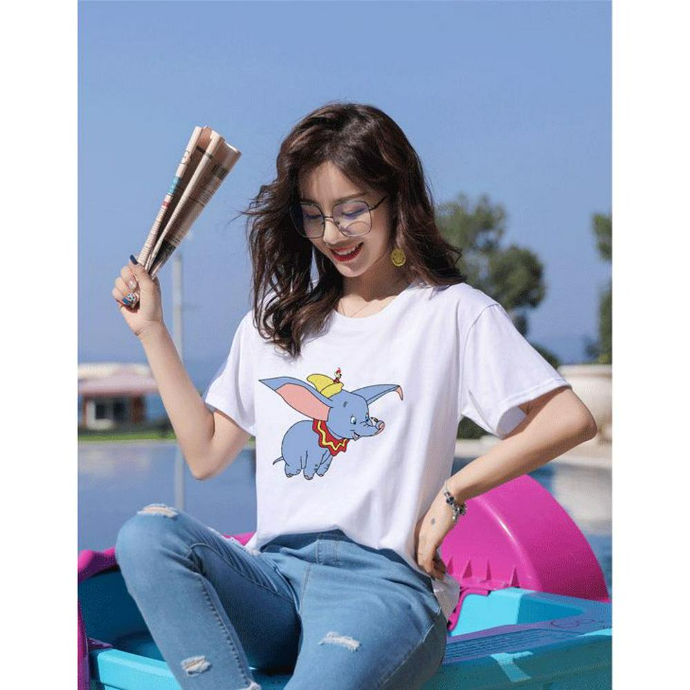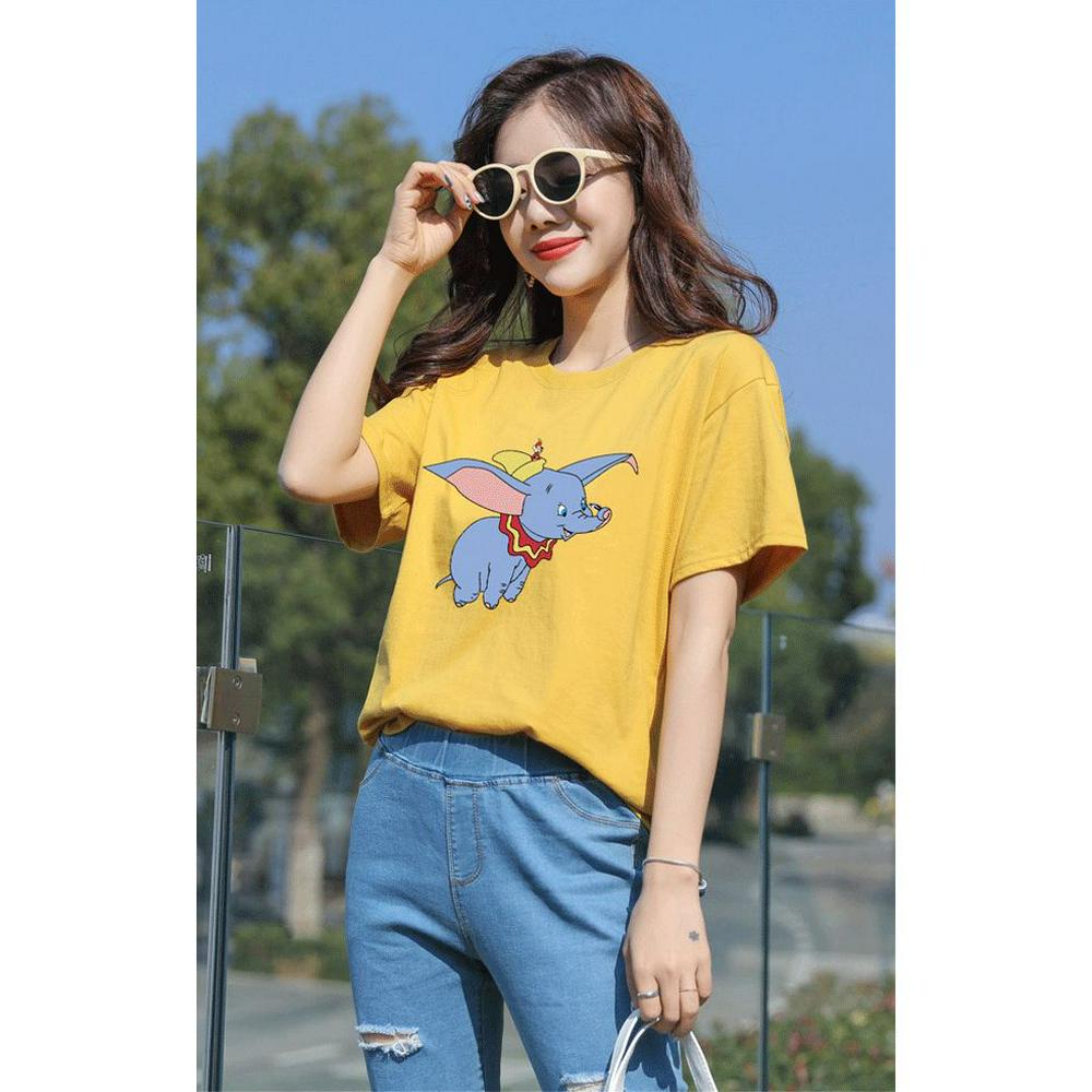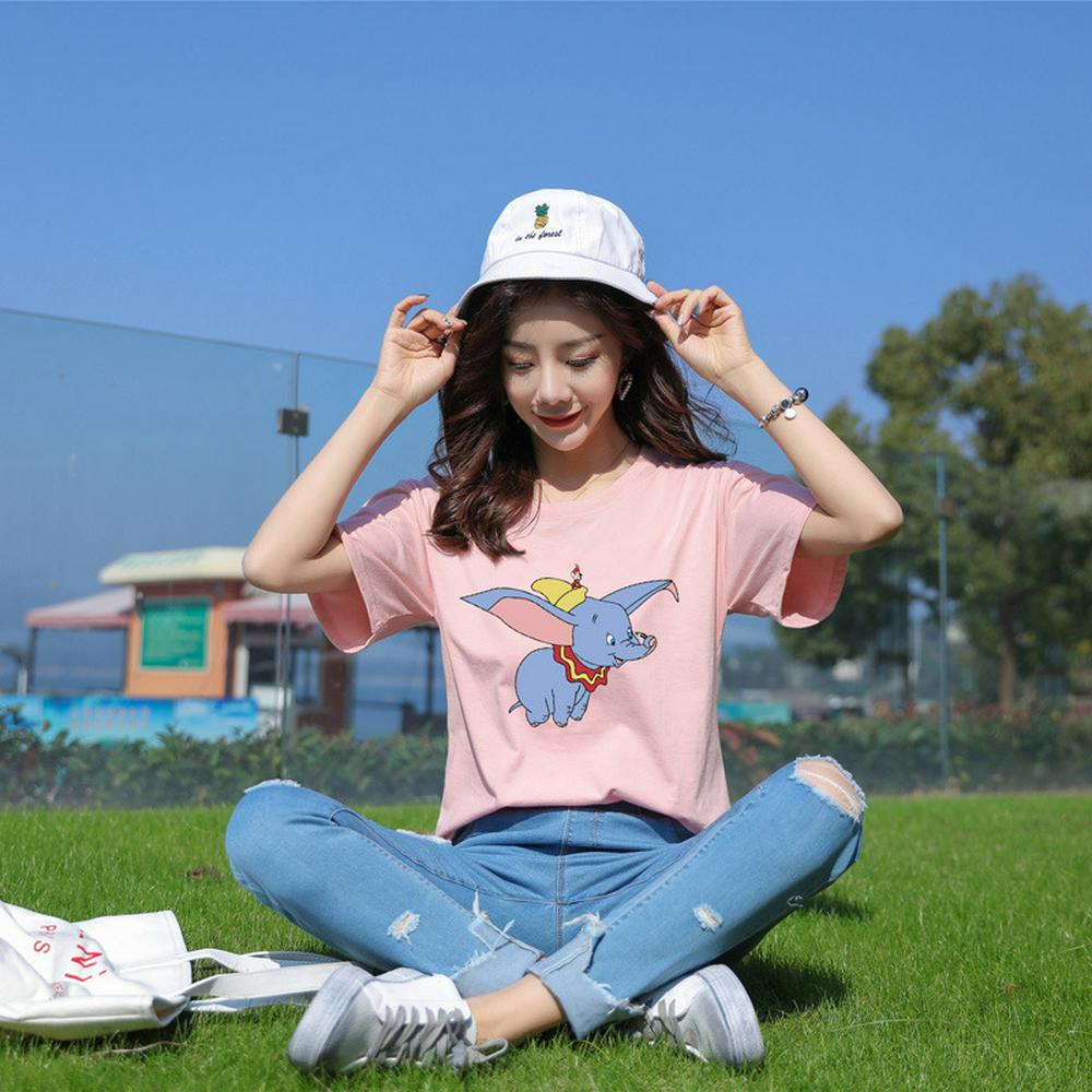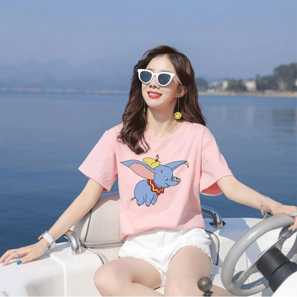 Women's Casual Crewneck T-shirt with Short Sleeve Front-printed Top - Pink, White, Yellow