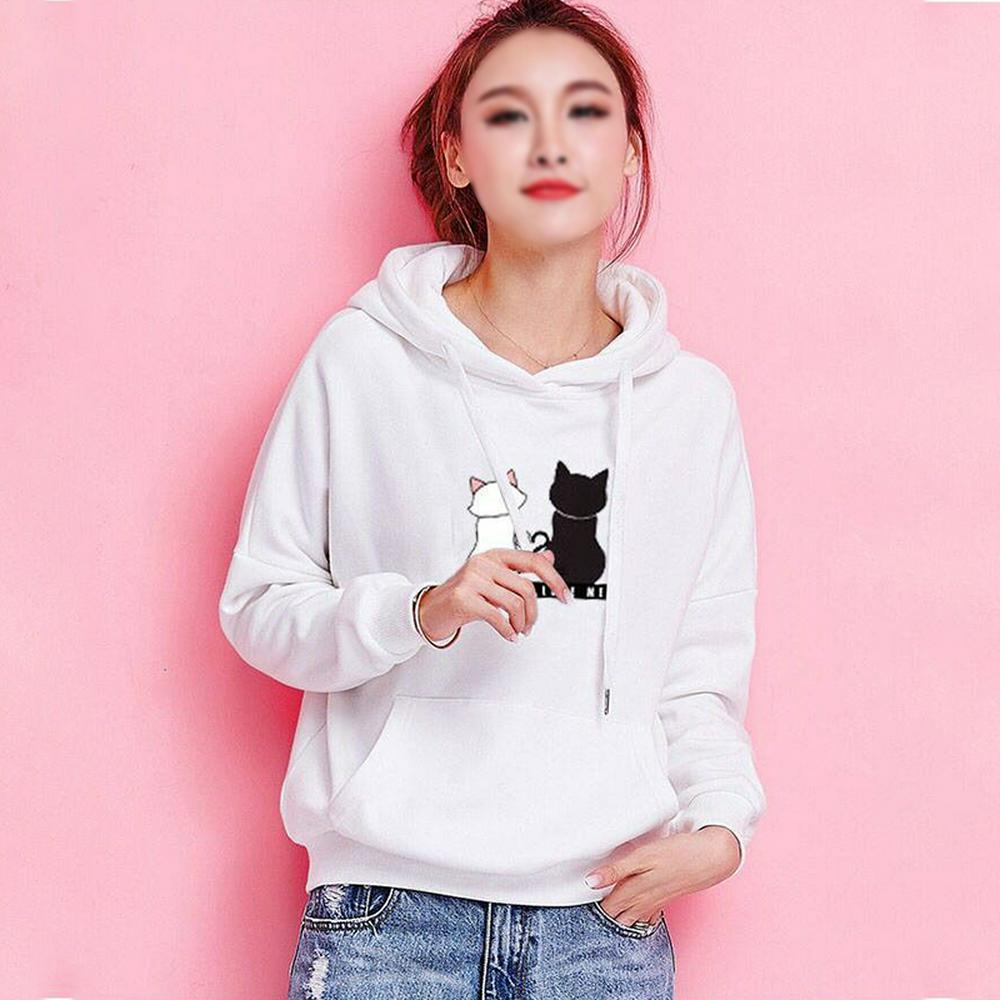 Women's Casual Sweatshirt Cute Cat Hoodie with Drawstring