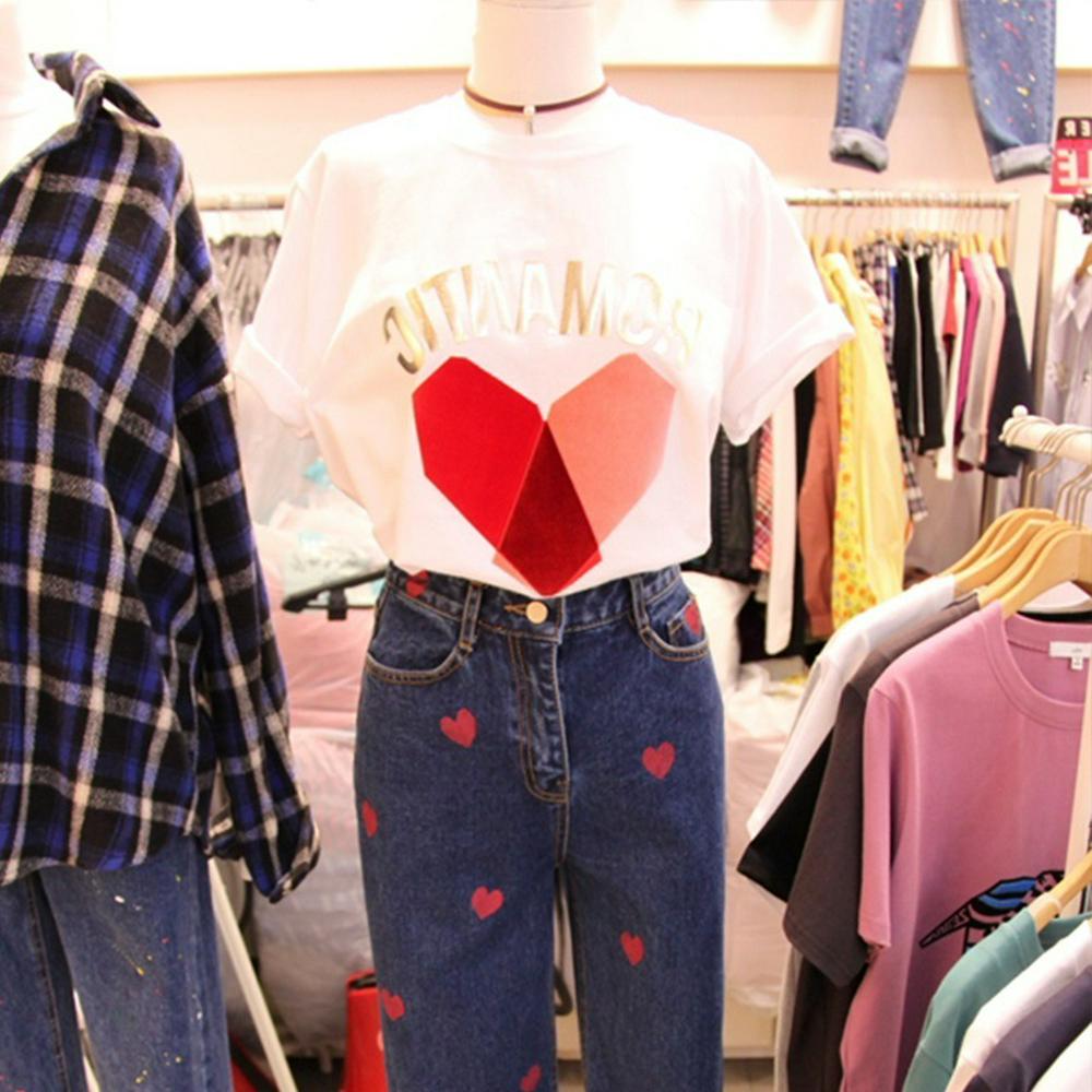 Women's Fashionable Printed T-shirt Loose Causal Tee with Round Neckline
