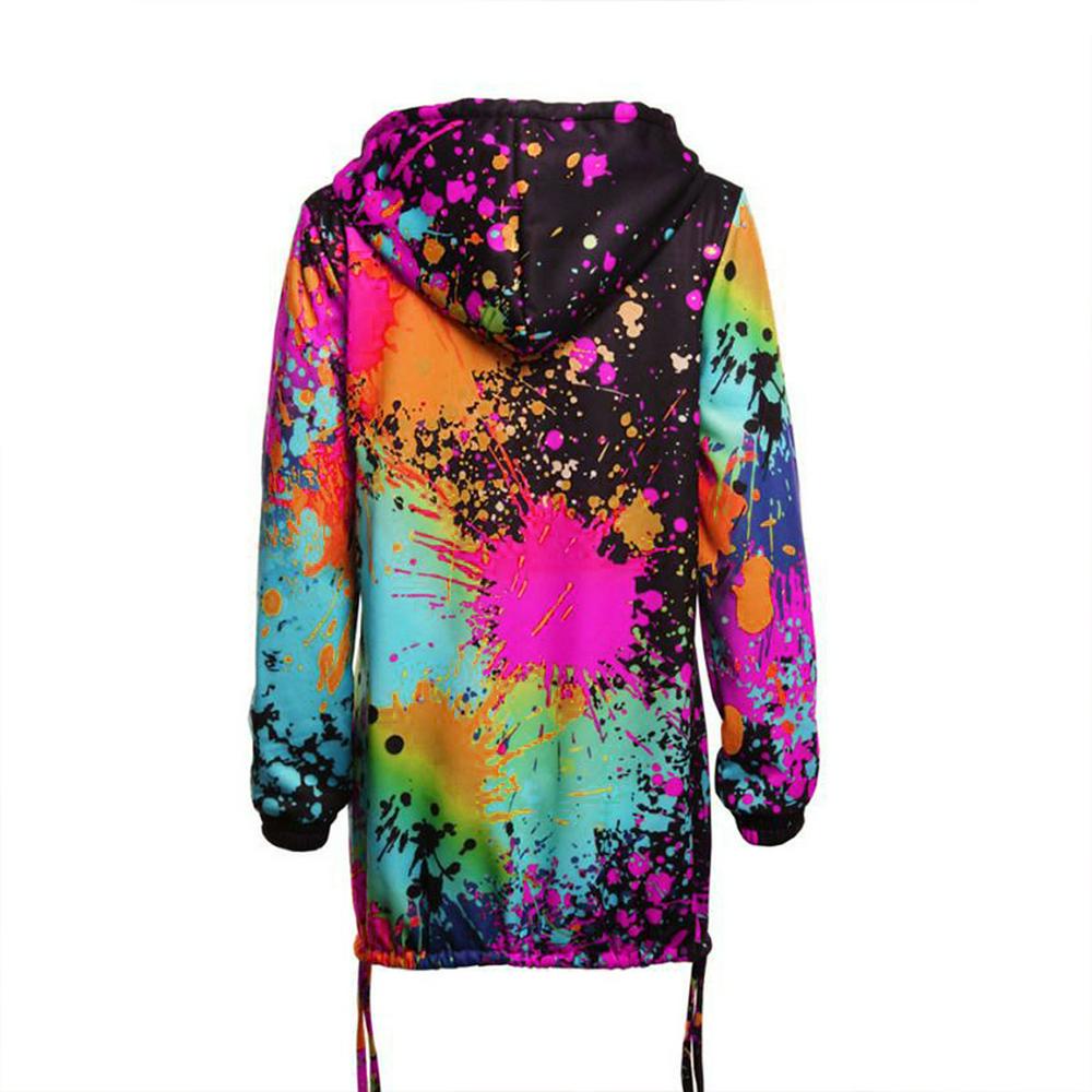 Women's Fashionable Watercolor Jacket Casual Multicolored Thigh-length Hoodie