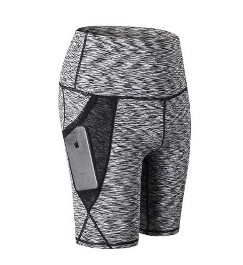 Women's High Waist Yoga Shorts Mesh Gauze Pocket Sports Tight Elastic Quick-drying Fitness Five-point Pants
