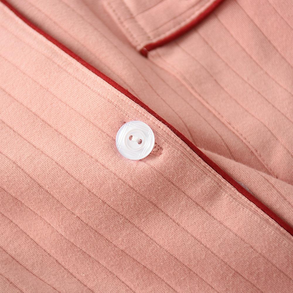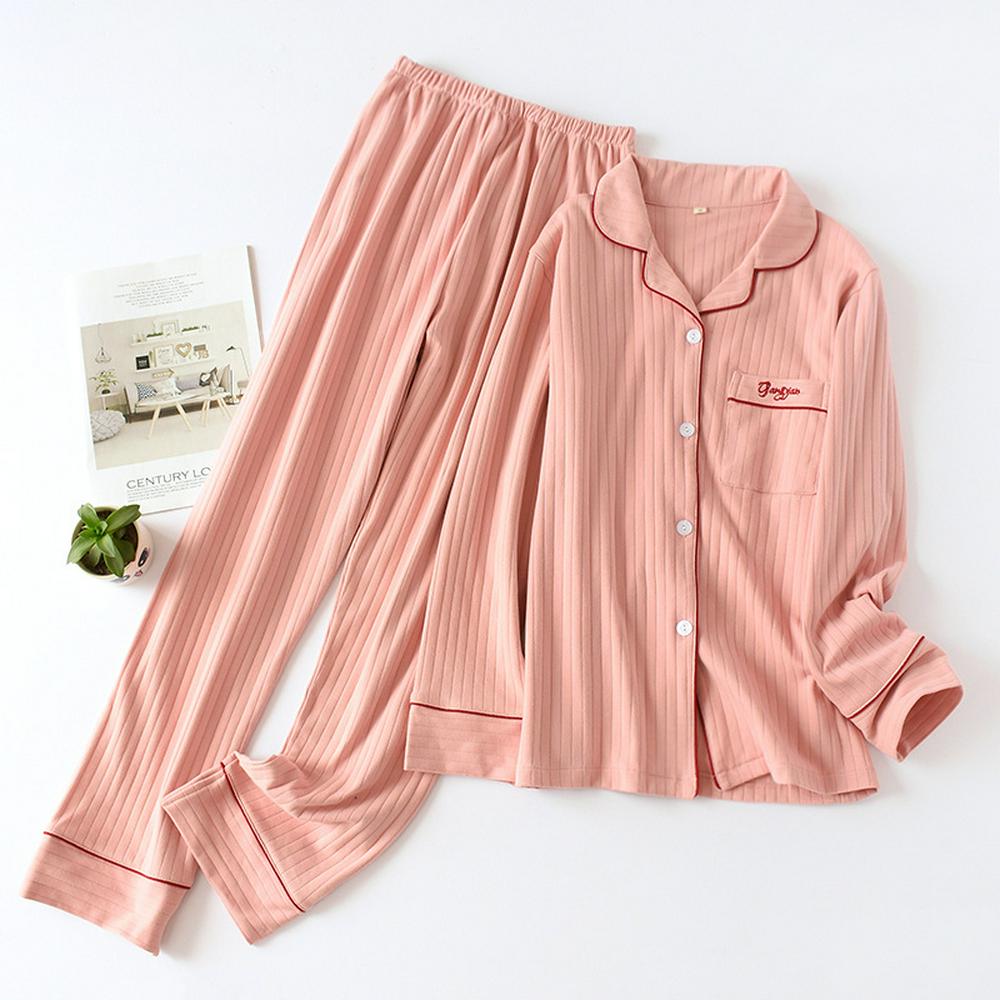 Women's Knitted Cotton Pajamas Button Down Stripe Nightwear