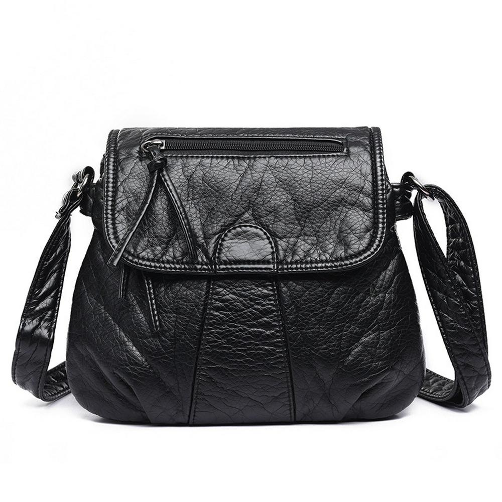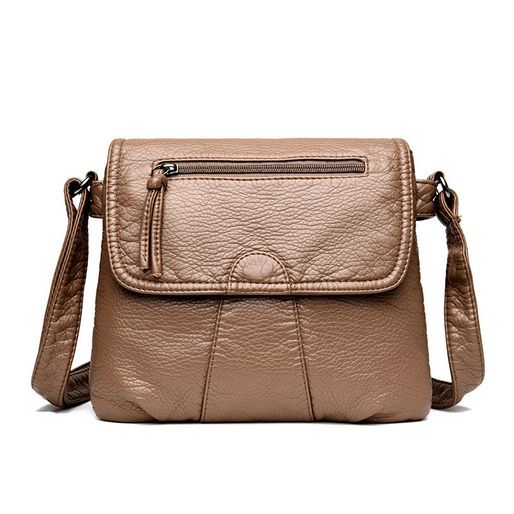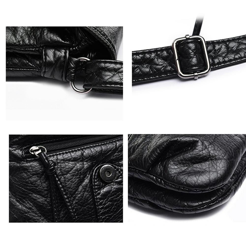 Women's Leather Crossbody Bag Shiny Waterproof Shoulder Bag with Snap Button and Zipper Closure