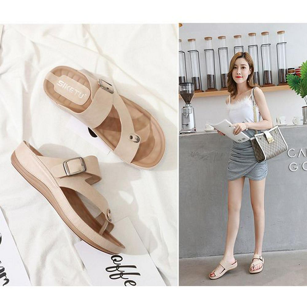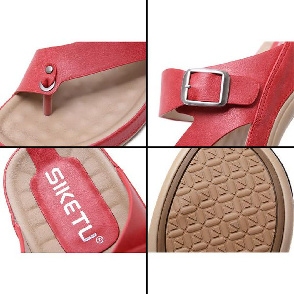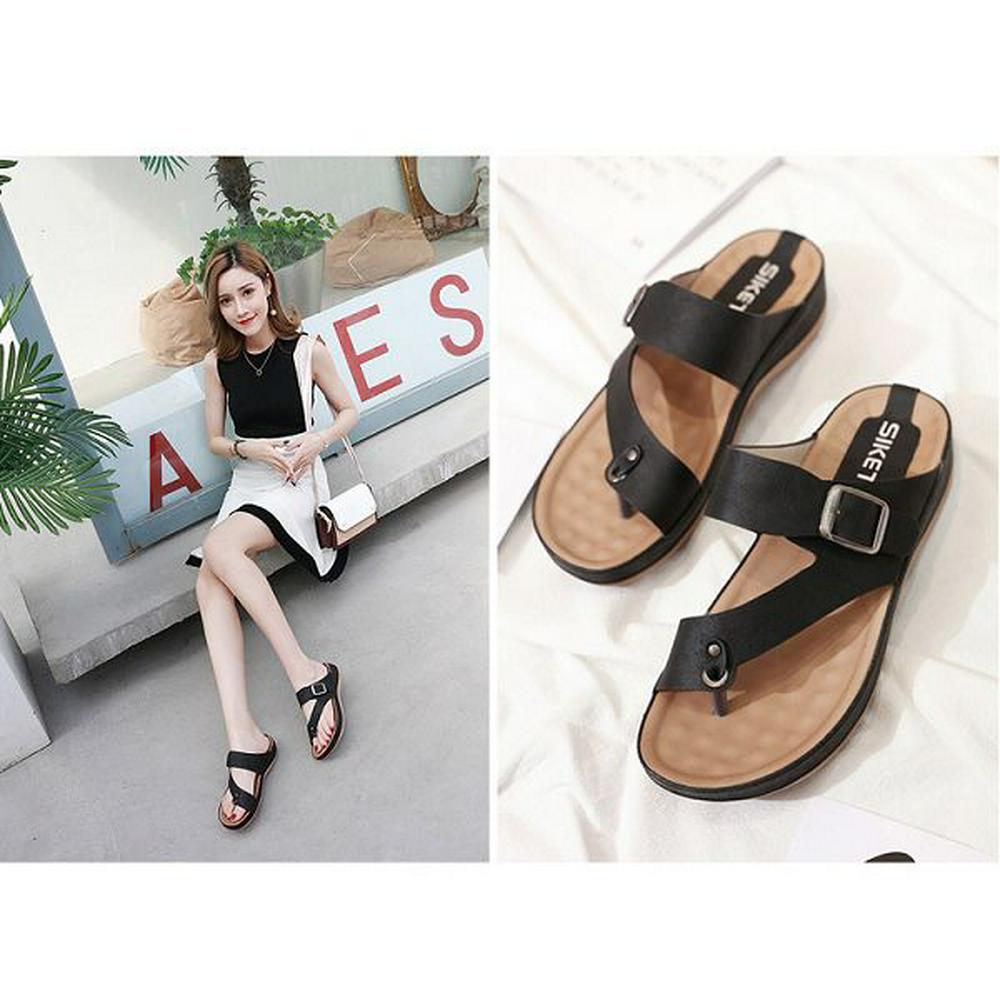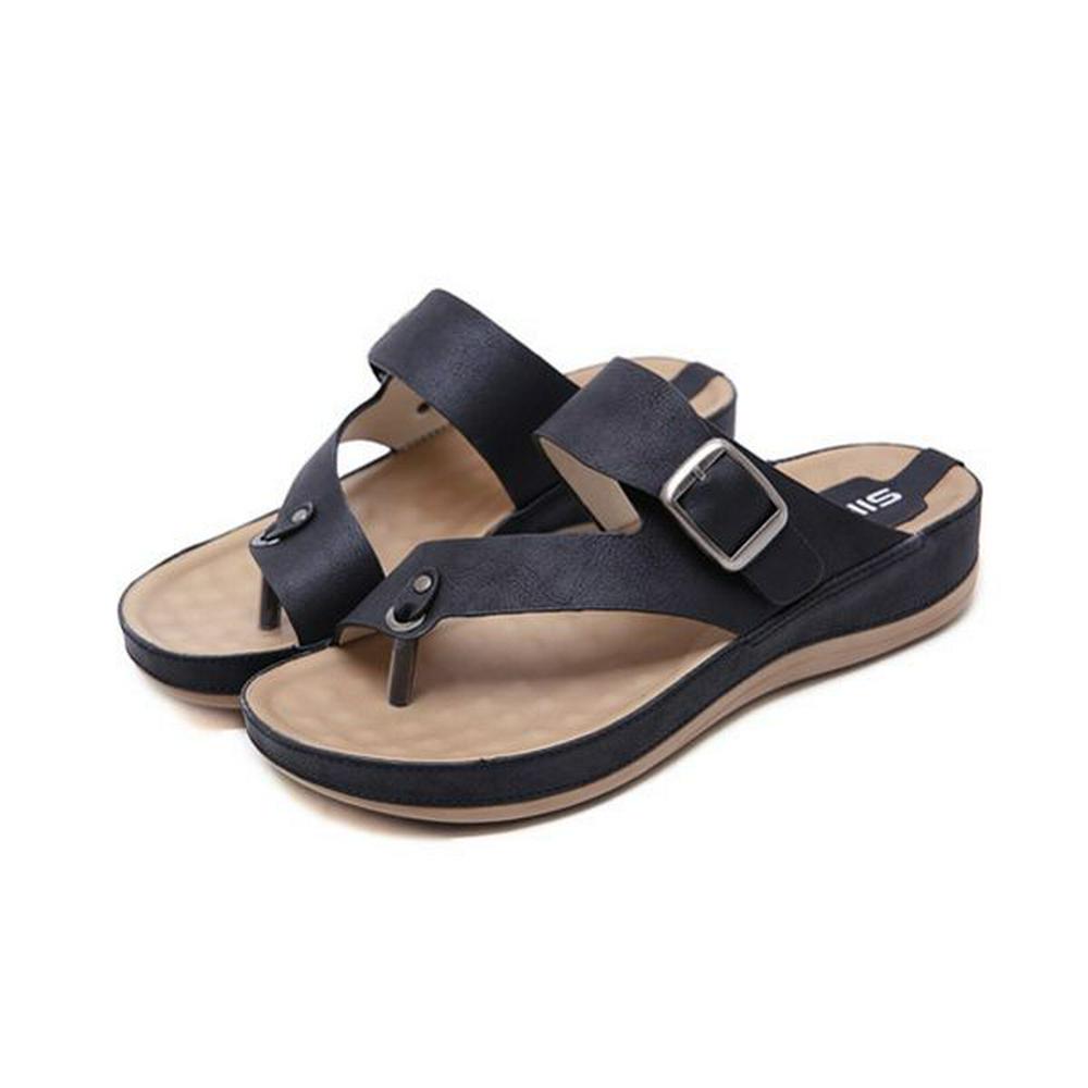 Women's Leather-like Flip Flops Thick Sole Metal Buckle Sandals Comfortable Walking Sandals
