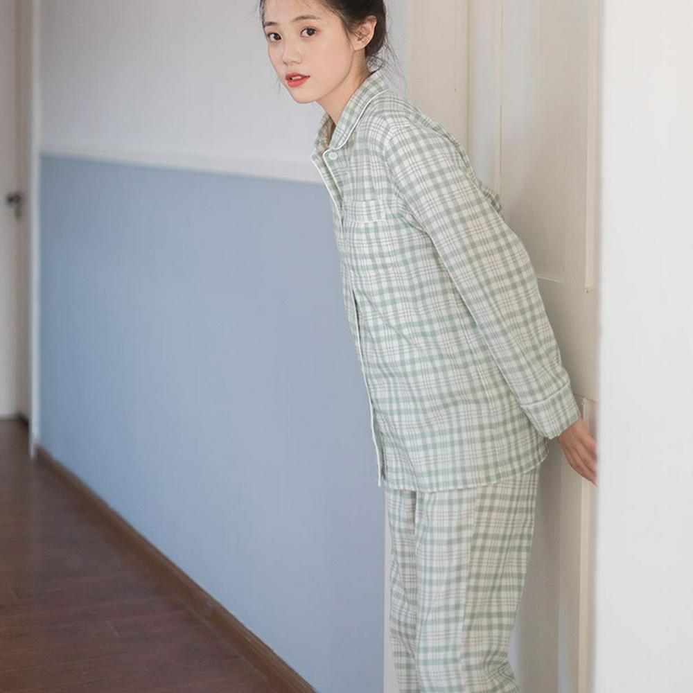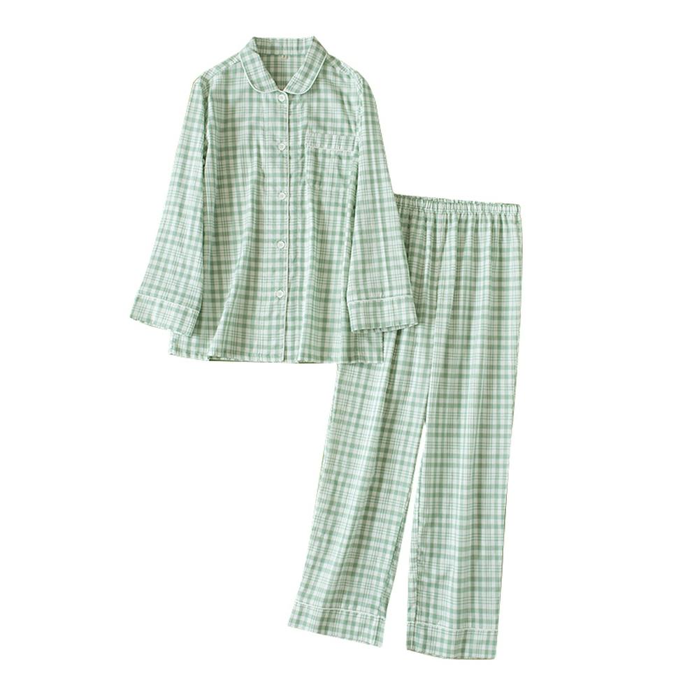 Women's Long Sleeve Cotton Sleepwear Button Down Plaid Nightwear