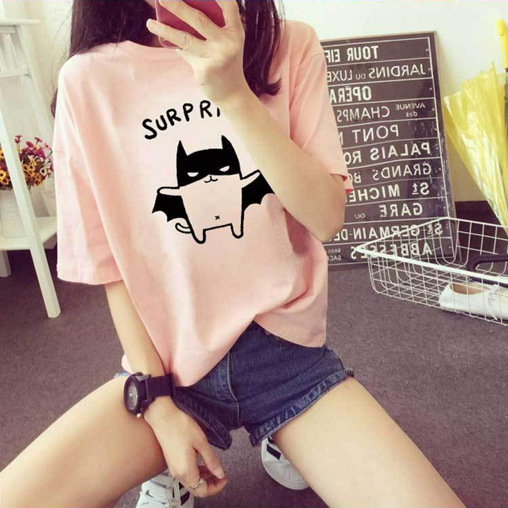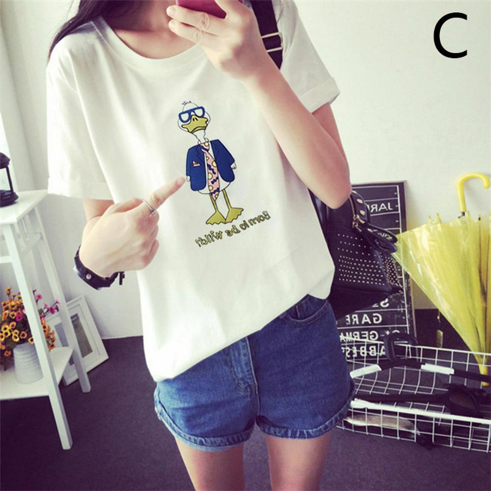 Women's Loose-fit Casual T-shrit Crewneck Short Sleeve Funny Print