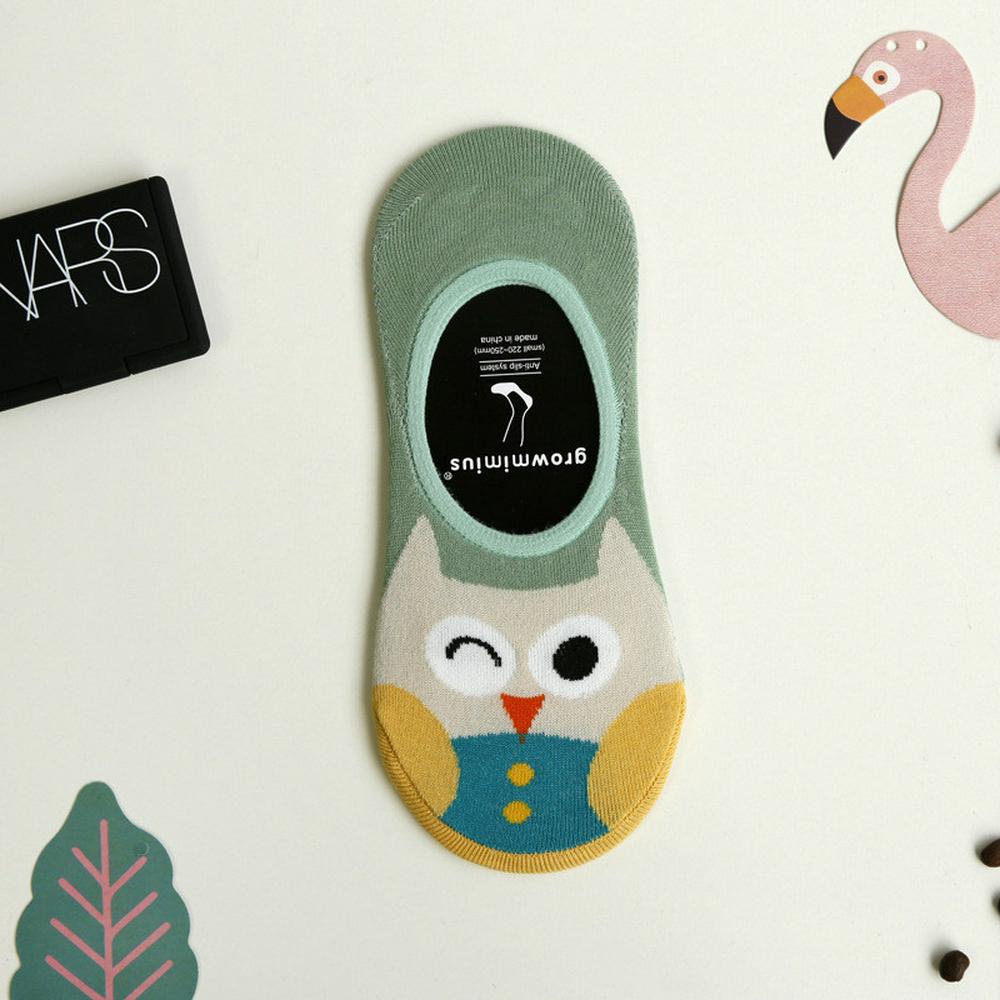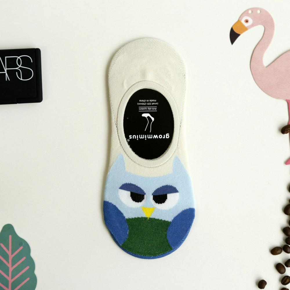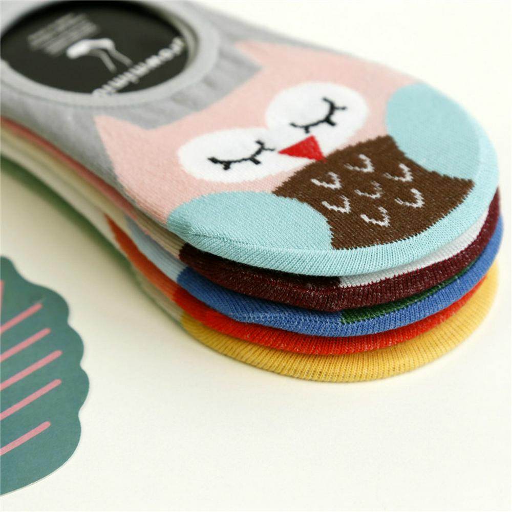Women's Owl Cotton Boat Socks No-show Socks with Non-slip Silicone Tab